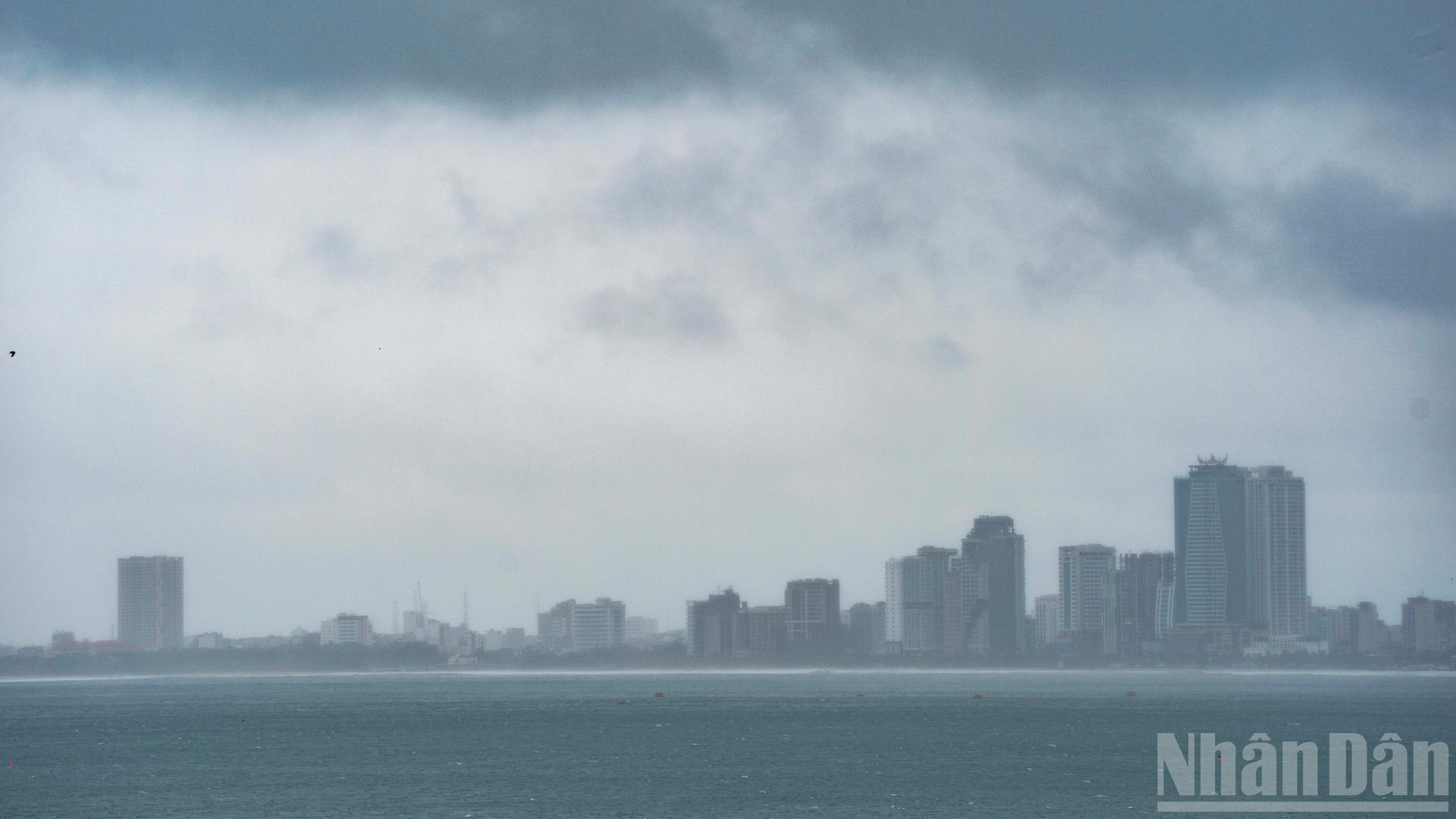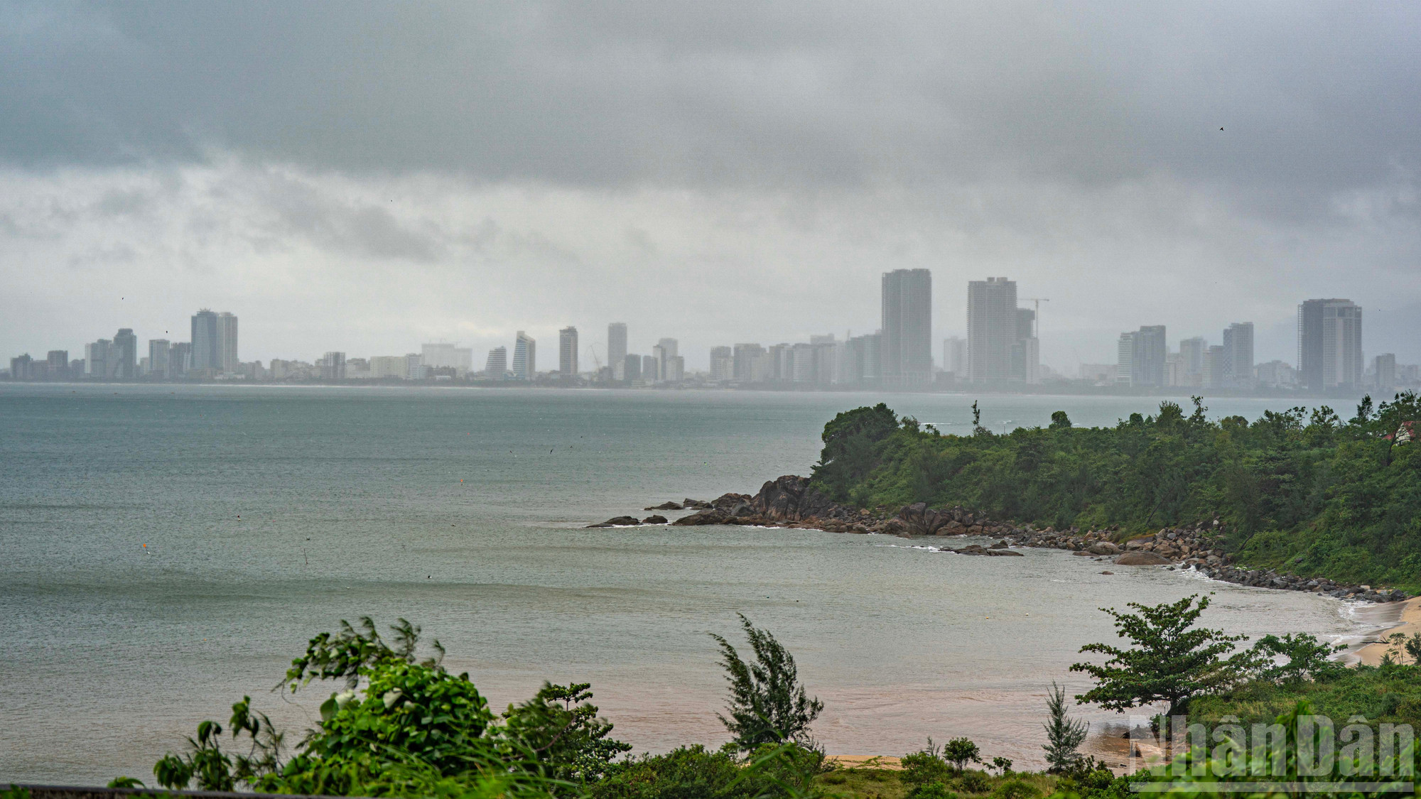 Thành phố Đà Nẵng trong cơn mưa nhìn từ bán đảo Sơn Trà.
