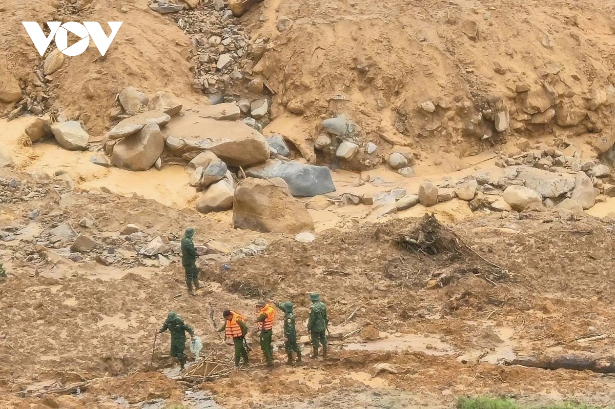 Khi các lực lượng cứu hộ đang tiếp cận khu vực tìm kiếm người mất tích, từ lòng núi bất ngờ phát ra tiếng nổ lớn, ngay sau đó lượng lớn đất đá từ sườn đồi cũ tiếp tục sạt xuống mạnh. Tình huống nguy hiểm buộc lực lượng tại chỗ phải nhanh chóng rút khỏi điểm sạt lở và tạm dừng tìm kiếm để đánh giá lại mức độ an toàn.