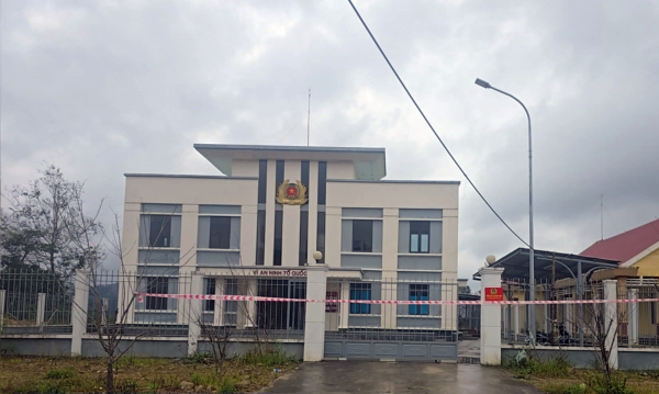 Cơ sở 2 trụ sở làm việc Công an xã Hùng Sơn được căng dây cảnh báo.