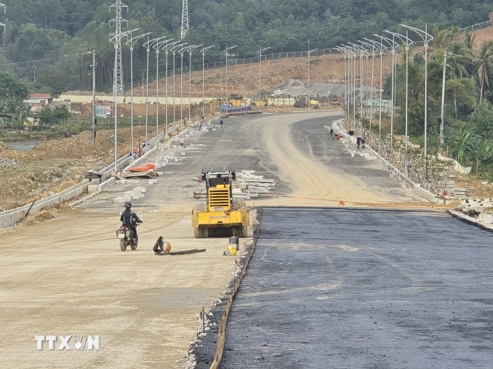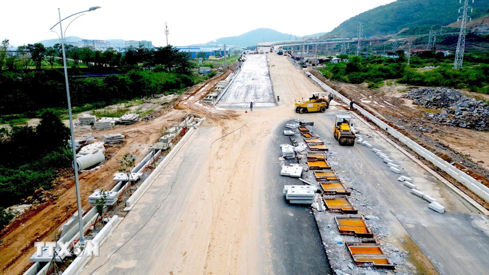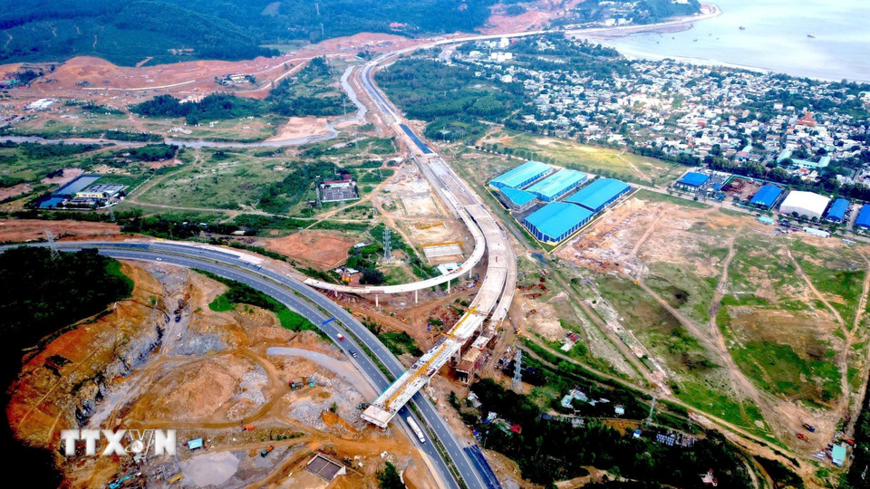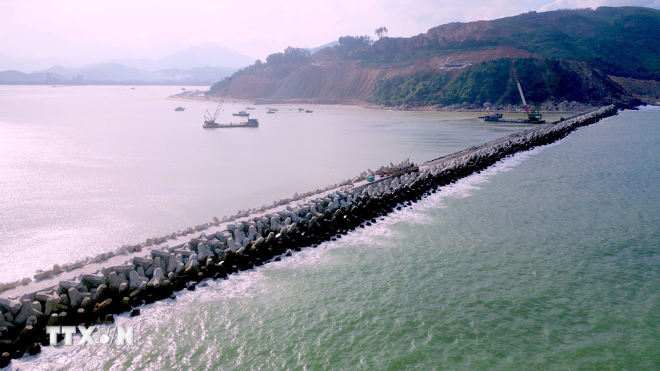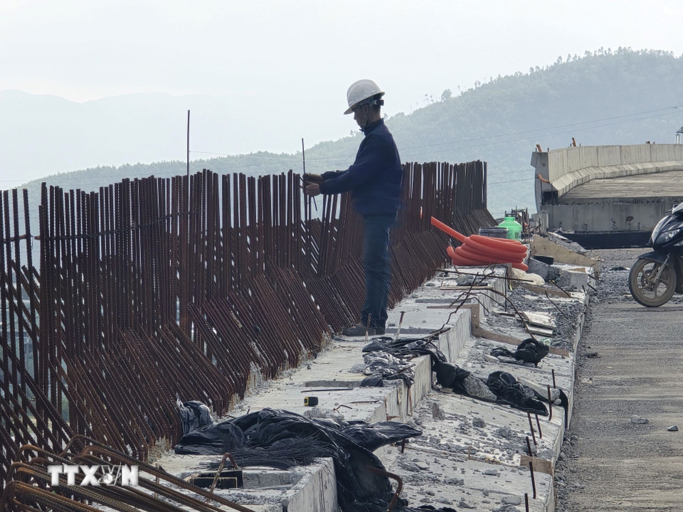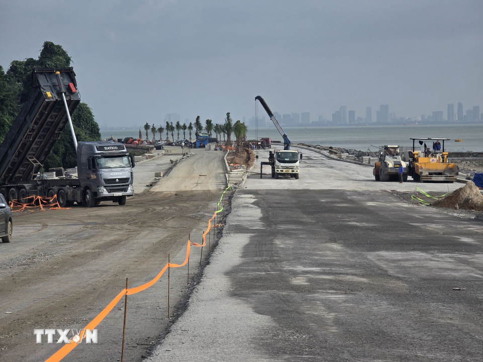 Nỗ lực thi công các hạng mục nhằm đưa Dự án Bến cảng Liên Chiểu và tuyến đường ven biển kết nối cảng tại phường Hải Vân (thành phố Đà Nẵng) về đích đúng hạn. (Ảnh: Khoa Chương/TTXVN)