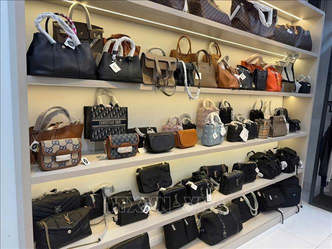 Lực lượng chức năng thành phố Đà Nẵng phát hiện hàng nghìn túi xách hàng hiệu không rõ nguồn gốc tại các cửa hàng trên địa bàn. Ảnh: TTXVN phát