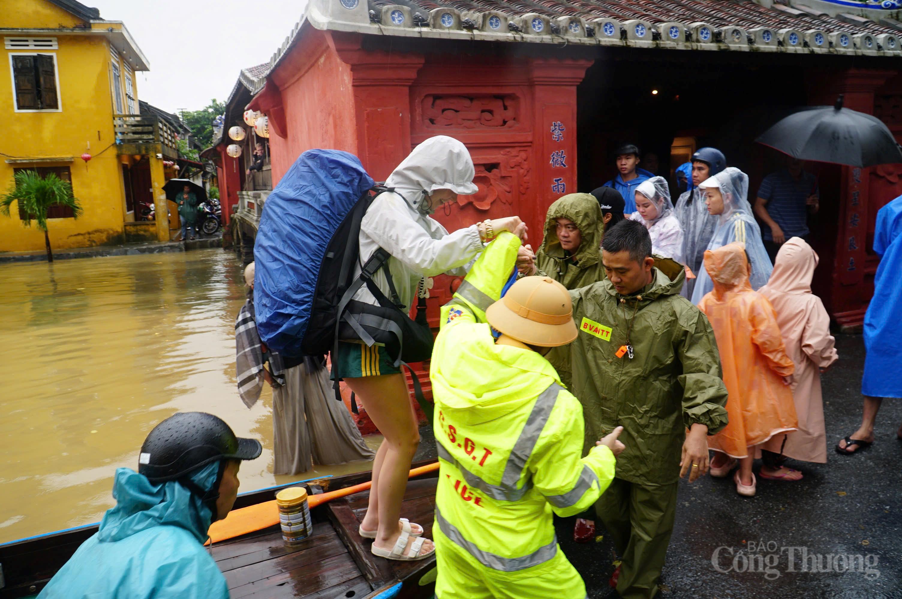 Ông Nguyễn Tấn Cường, Chủ tịch UBND phường Hội An cho biết, mực nước sông Hoài đã gần mức báo động 3. Sáng nay, các hộ kinh doanh ven sông đã chủ động thuê thuyền để di dời hết du khách.