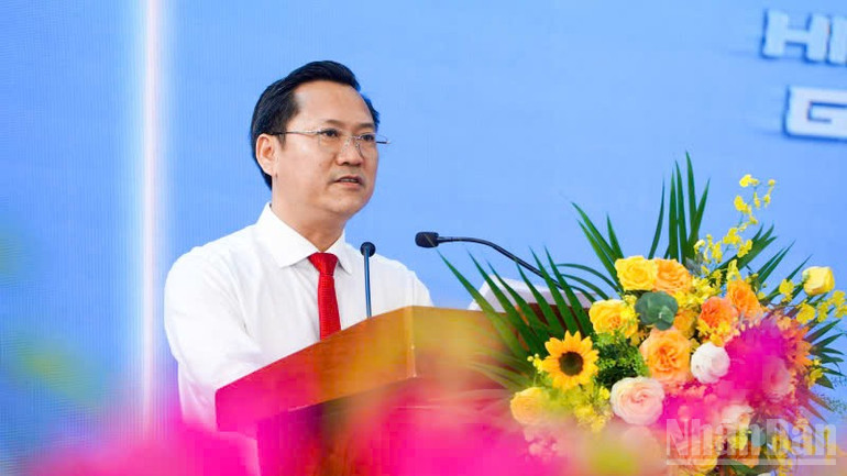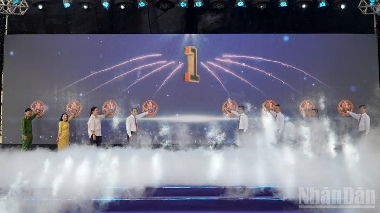 Các đại biểu ấn nút phát động phong trào Bình dân học vụ số.