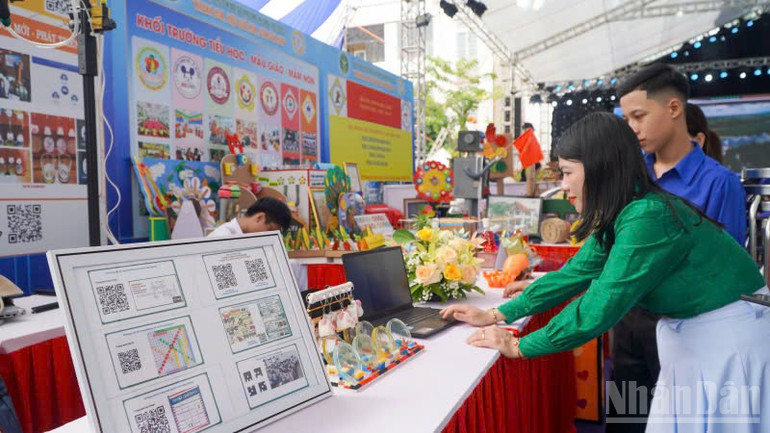 Gian hàng giới thiệu, trưng bày, trải nghiệm các giải pháp, ấn phẩm công nghệ số của khối trường học trung học phổ thông trên địa bàn phường Hương Trà.