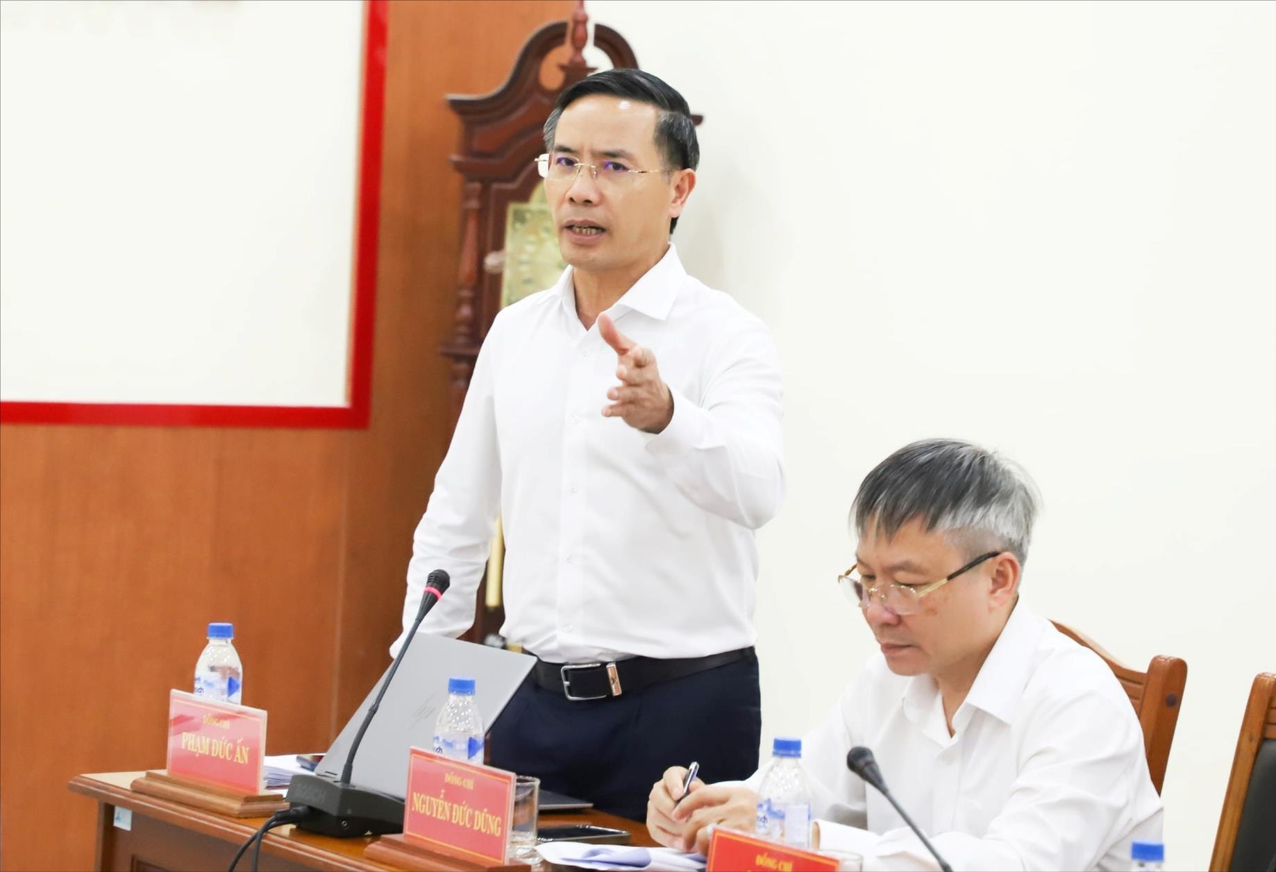 Chủ tịch UBND thành phố Phạm Đức Ấn phát biểu tại cuộc họp. Ảnh: NGỌC PHÚ
