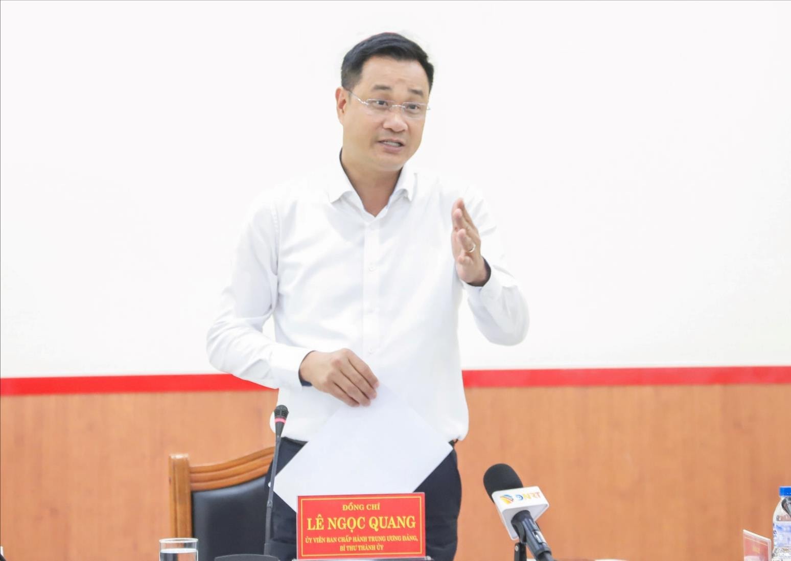 Bí thư Thành ủy Lê Ngọc Quang phát biểu kết luận cuộc họp. Ảnh: NGỌC PHÚ