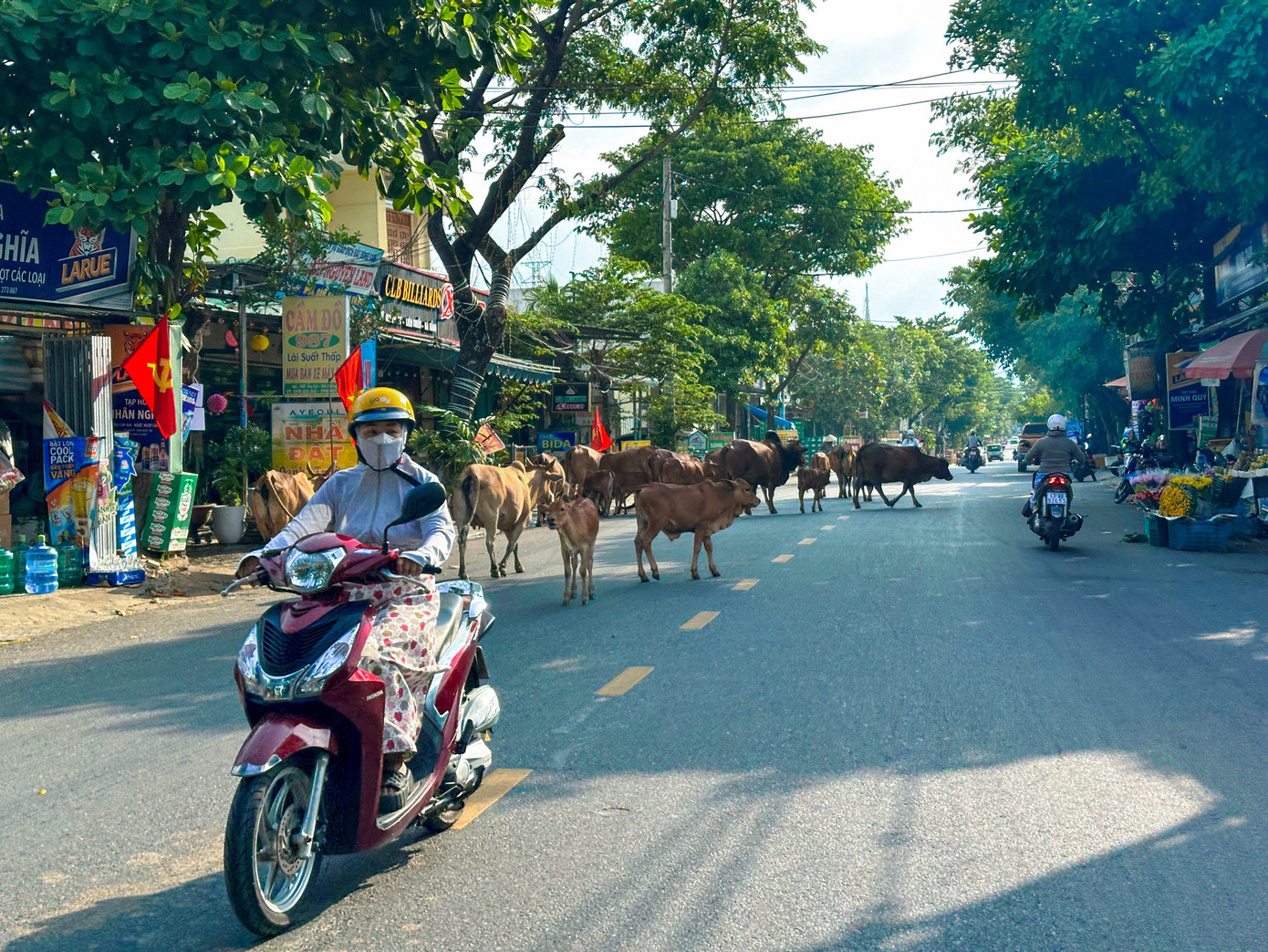 Tình trạng bò thả rông đi ngang nhiên giữa đường ở Đà Nẵng.