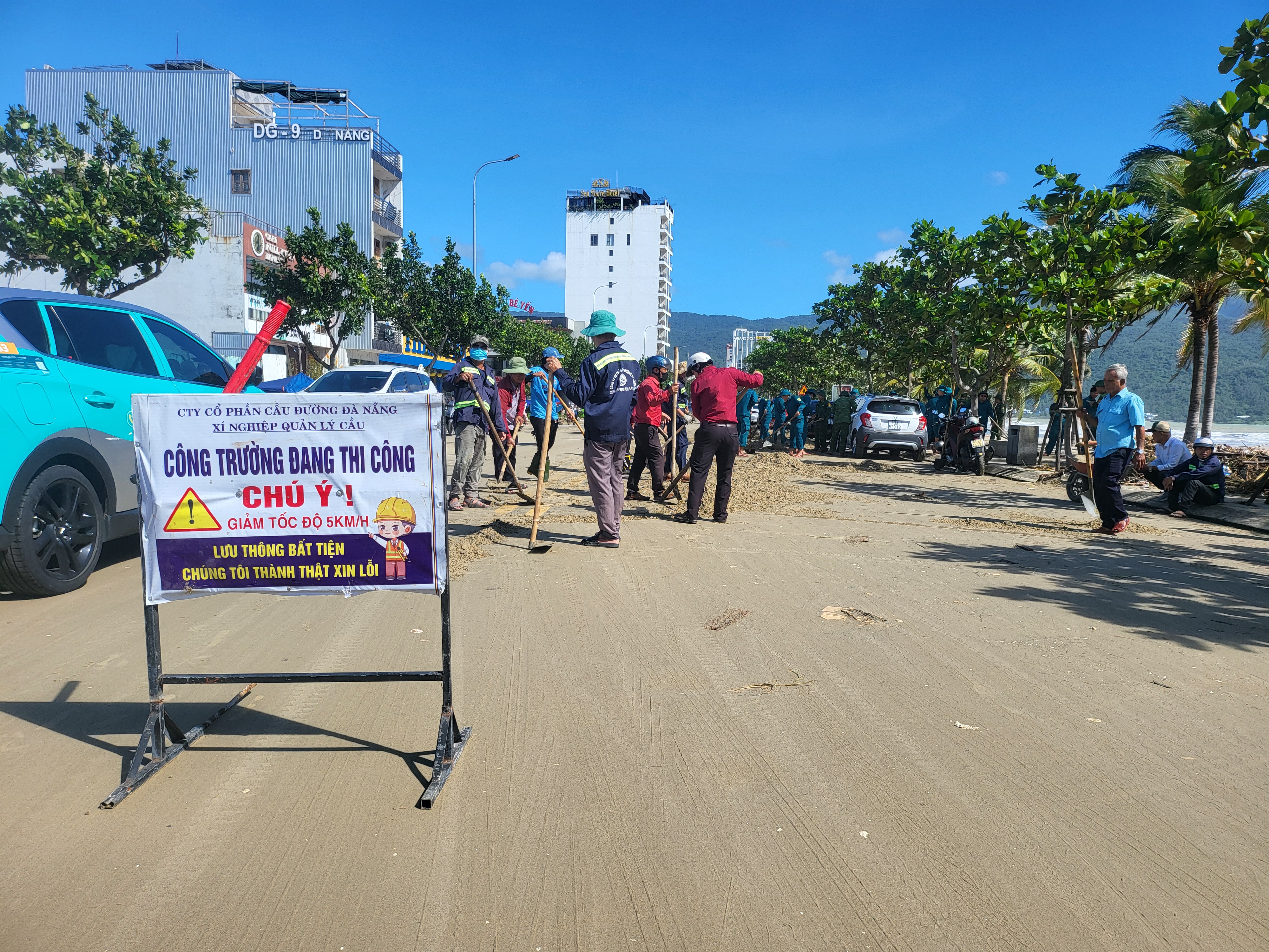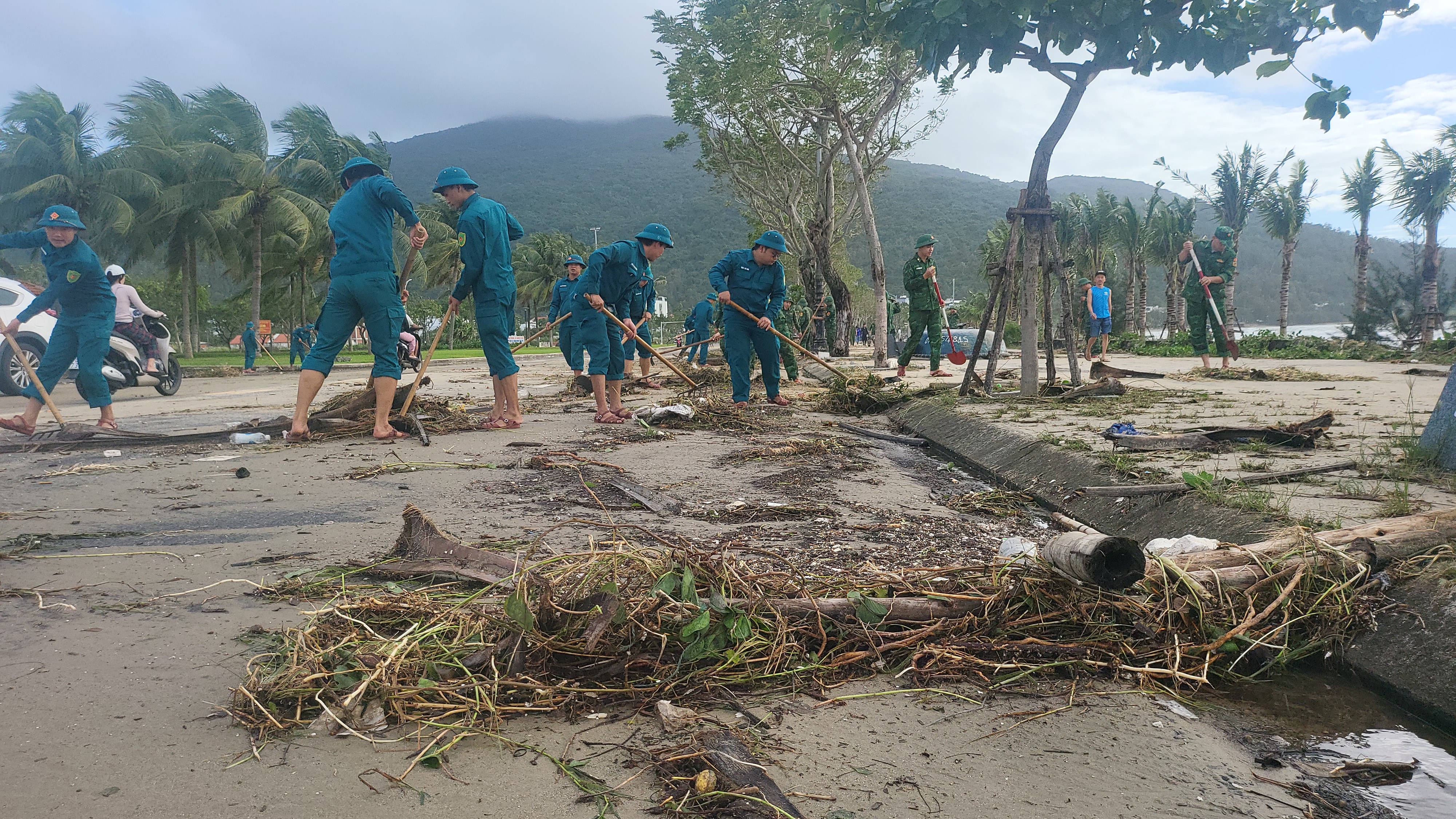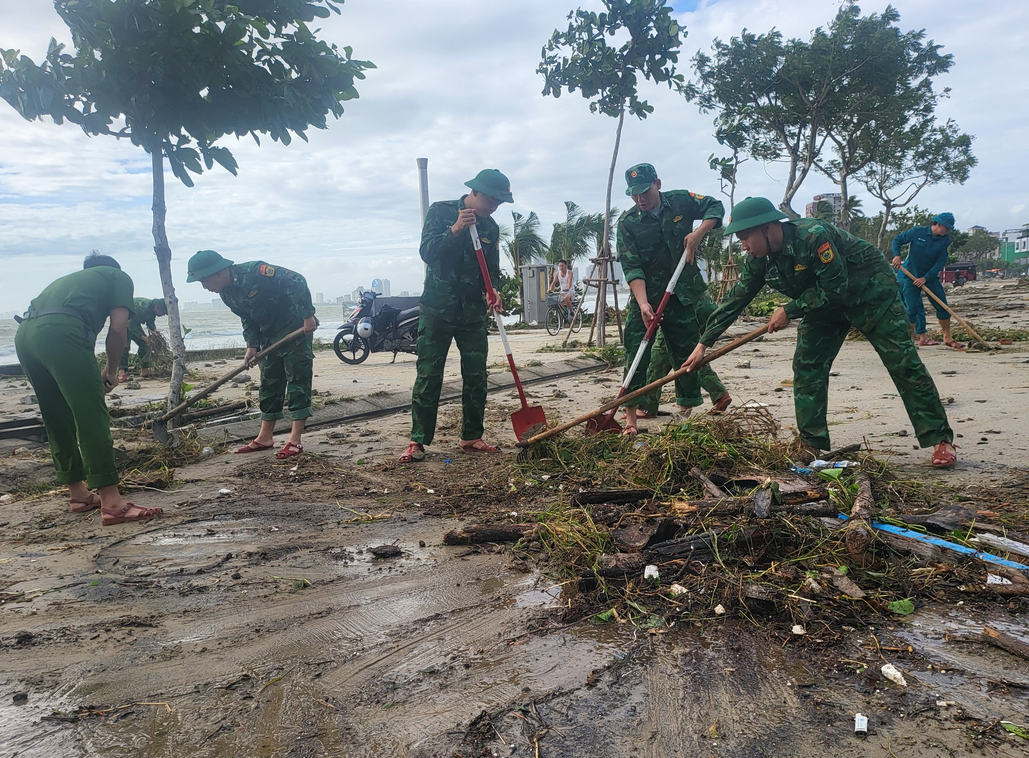 Khoảng 7 giờ cùng ngày, lực lượng chức năng phường Sơn Trà phối hợp Ban Chỉ huy phòng thủ Khu vực 1 Cẩm Lệ, Đồn Biên phòng Sơn Trà và Trung đội pháo cùng các lực khác huy động nhân lực, phương tiện thu gom rác, phát quang, tạo điều kiện cho các phương tiện lưu thông an toàn trên tuyến ven biển.
