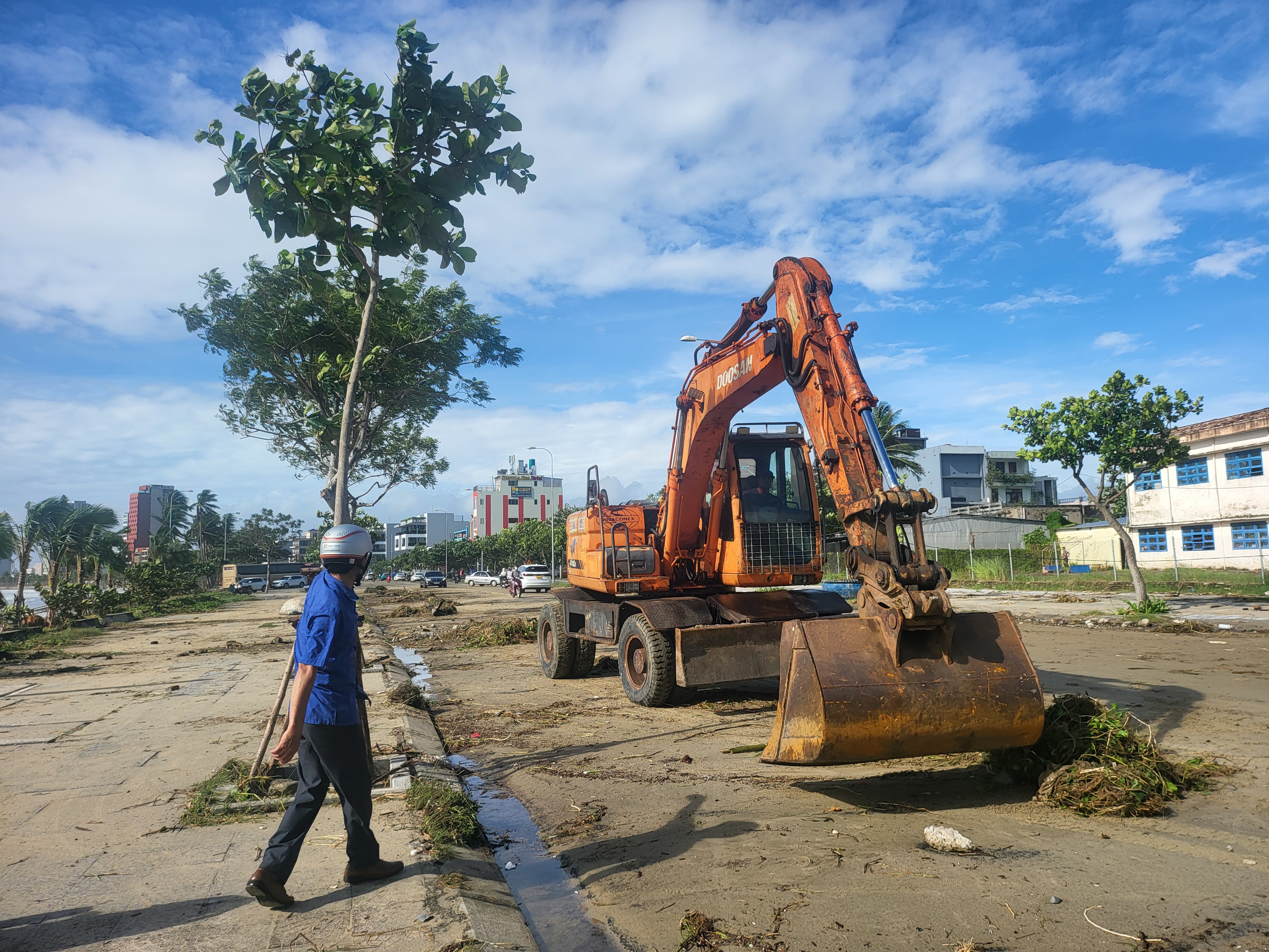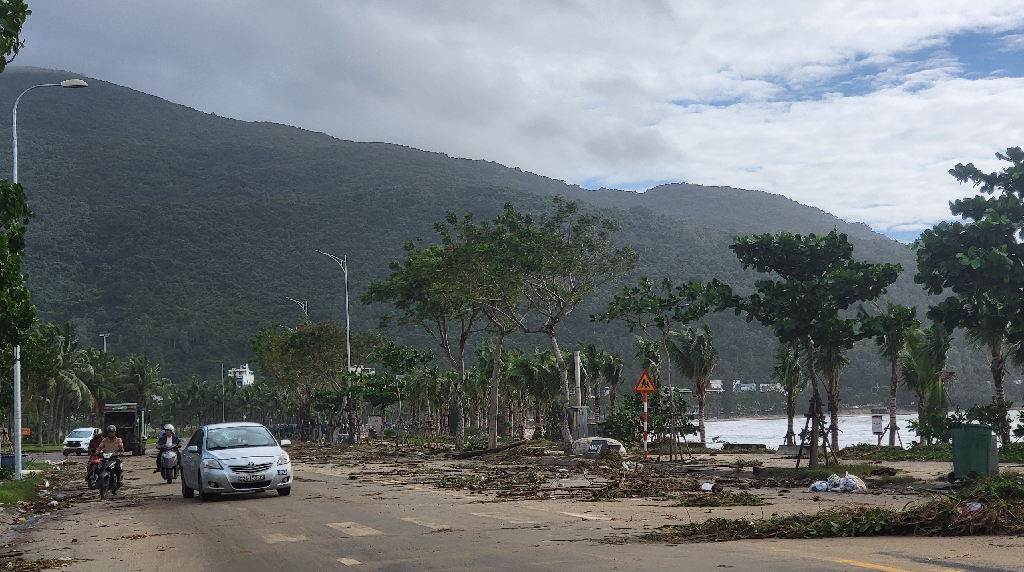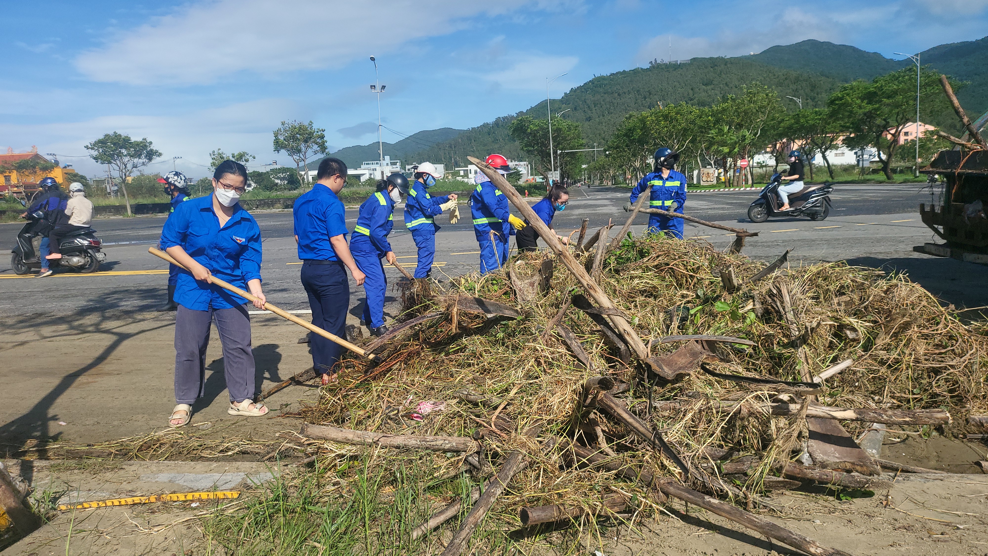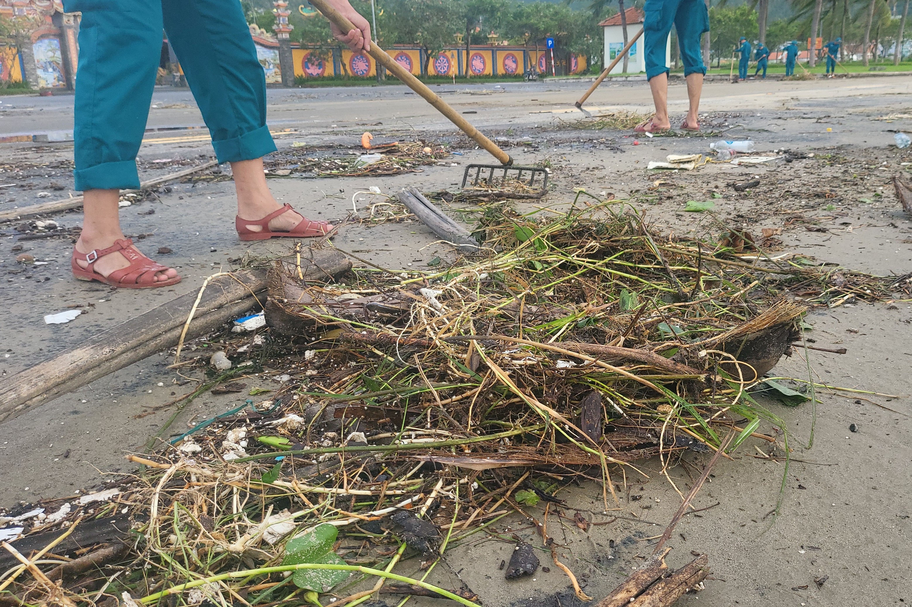 Khoảng 7 giờ cùng ngày, lực lượng chức năng phường Sơn Trà phối hợp Ban Chỉ huy phòng thủ Khu vực 1 Cẩm Lệ, Đồn Biên phòng Sơn Trà và Trung đội pháo cùng các lực khác huy động nhân lực, phương tiện thu gom rác, phát quang, tạo điều kiện cho các phương tiện lưu thông an toàn trên tuyến ven biển.