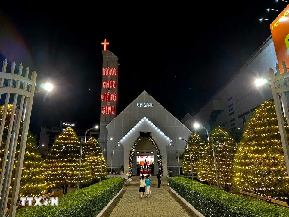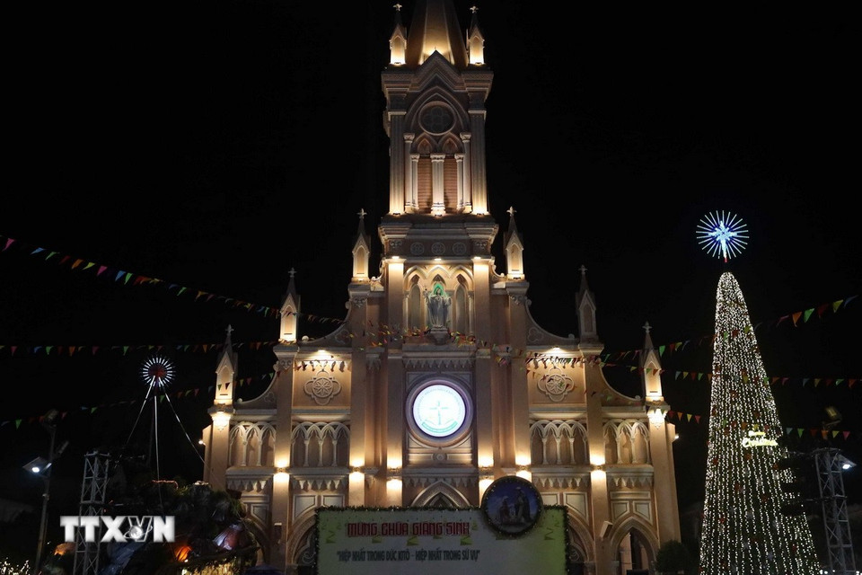 Nhà thờ ở Đà Nẵng được trang hoàng lộng lẫy đón Giáng sinh 2025. (Ảnh: Trần Lê Lâm/TTXVN)