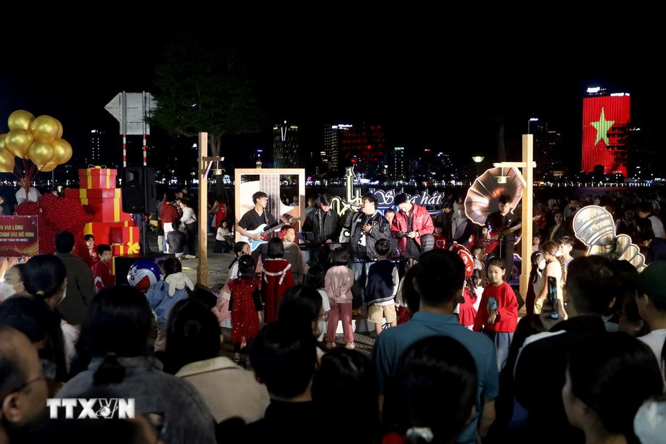 Biểu diễn âm nhạc phục vụ người dân, du khách vui đón Giáng sinh tại Đà Nẵng. (Ảnh: Trần Lê Lâm/TTXVN)