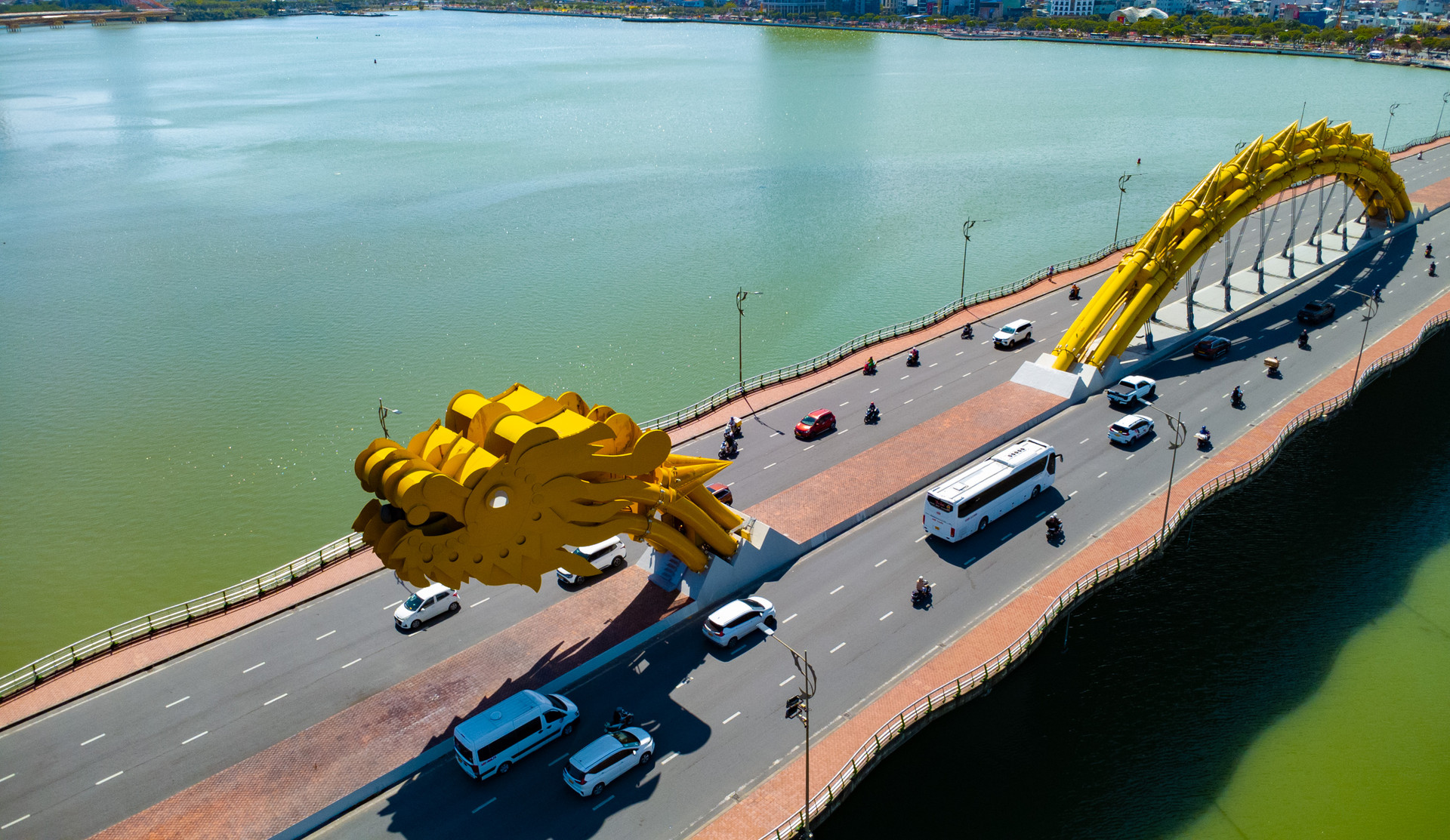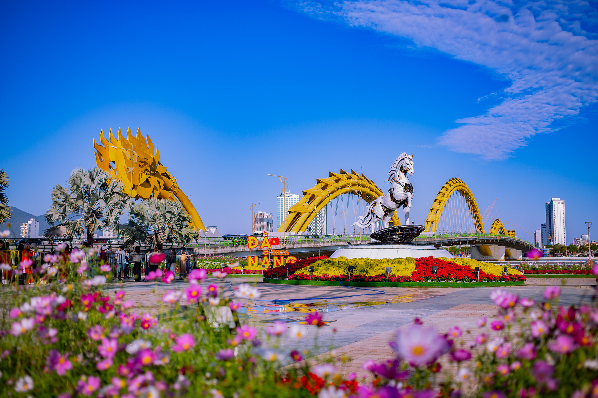 Cầu Rồng tươi đẹp những ngày giáp Tết. Ảnh: BẢO LÂM