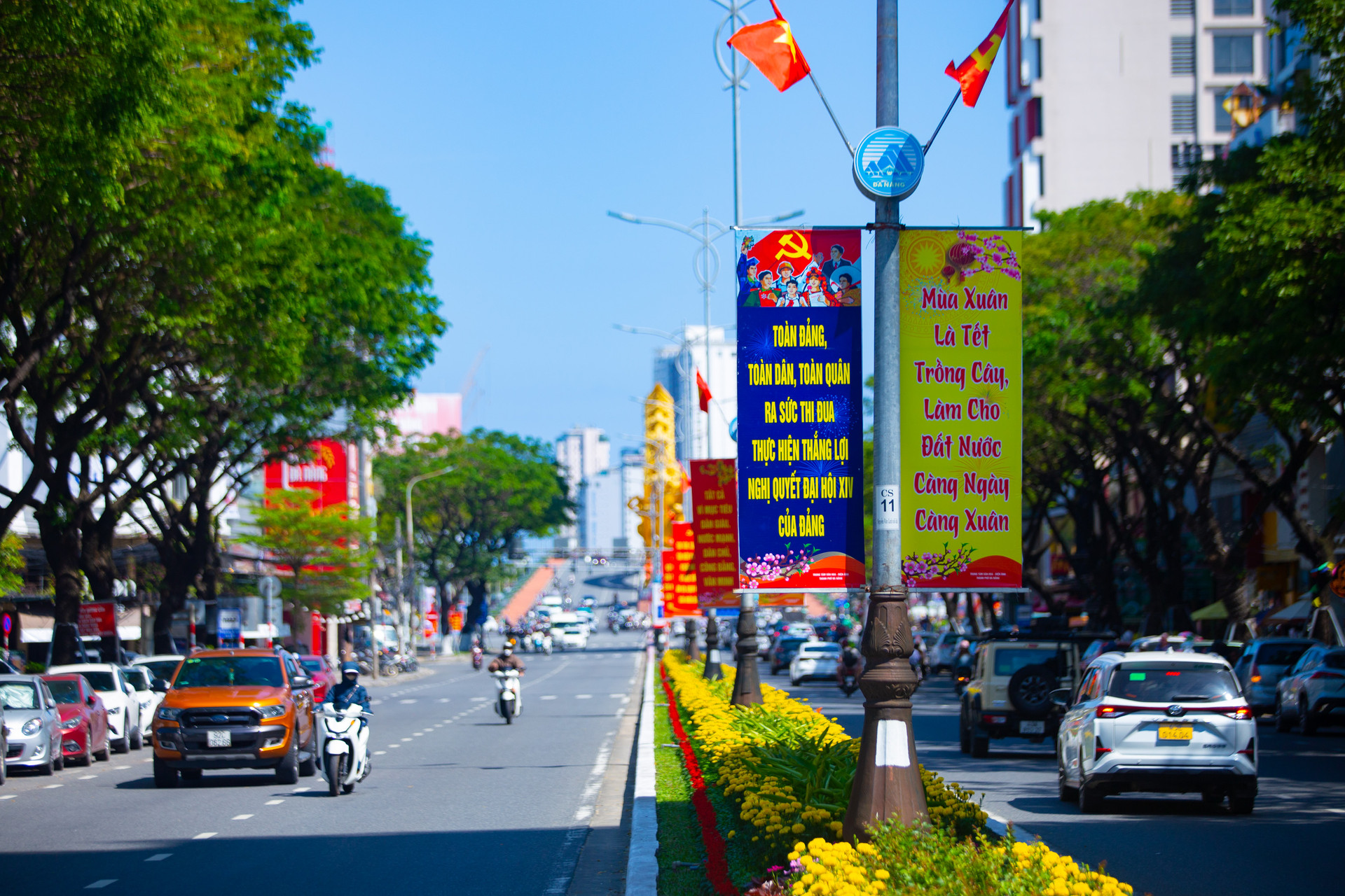 Đà Nẵng rợp sắc cờ hoa, biểu ngữ mừng Đảng, mừng Xuân Bính Ngọ 2026. Ảnh: BẢO LÂM