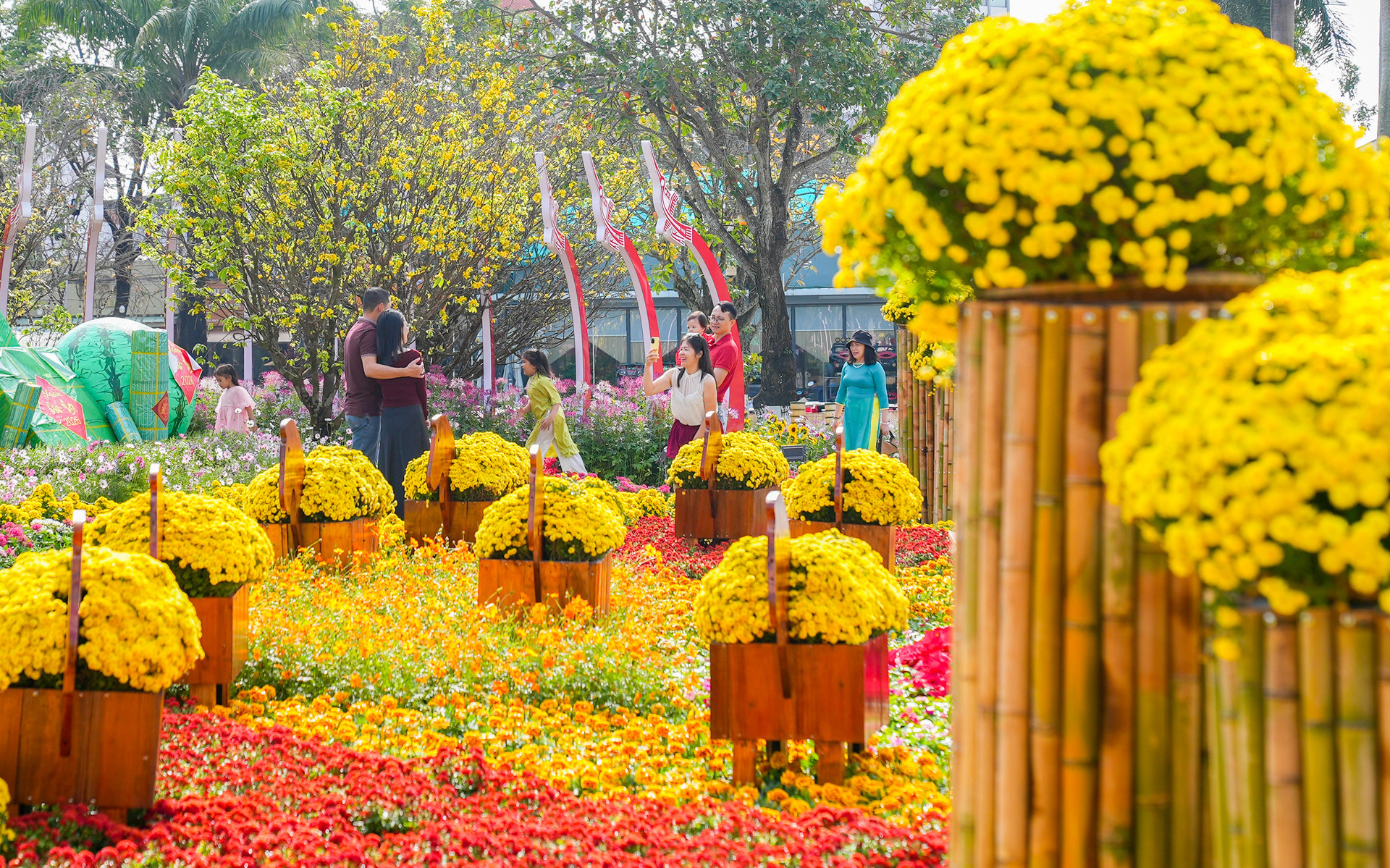 Đà Nẵng rực rỡ sắc hoa, không khí xuân lan tỏa trên từng tuyến phố.. Ảnh: BẢO LÂM