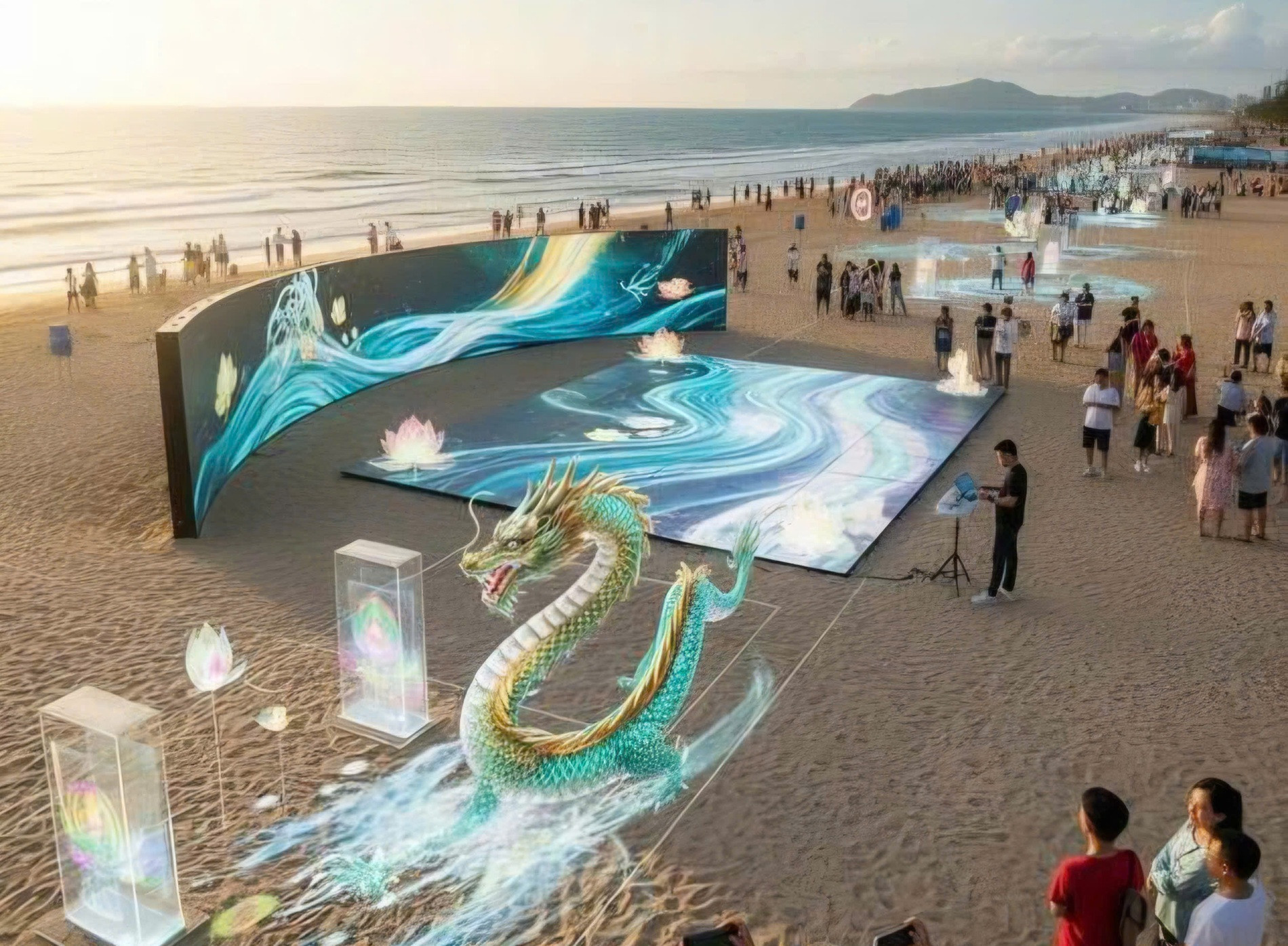 Theo đề xuất, bãi biển có thể trở thành “tấm canvas khổng lồ” với nghệ thuật cát 3D, tranh cát kỹ thuật số, vườn điêu khắc Champa, trình chiếu mapping sóng biển, ánh sáng nghệ thuật và màn trình diễn drone kể chuyện văn hóa.