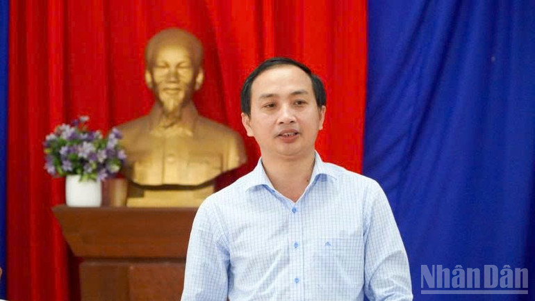 Bí thư Đảng ủy xã Trà Tân, thành phố Đà Nẵng Nguyễn Hồng Lai phát biểu tại buổi họp.