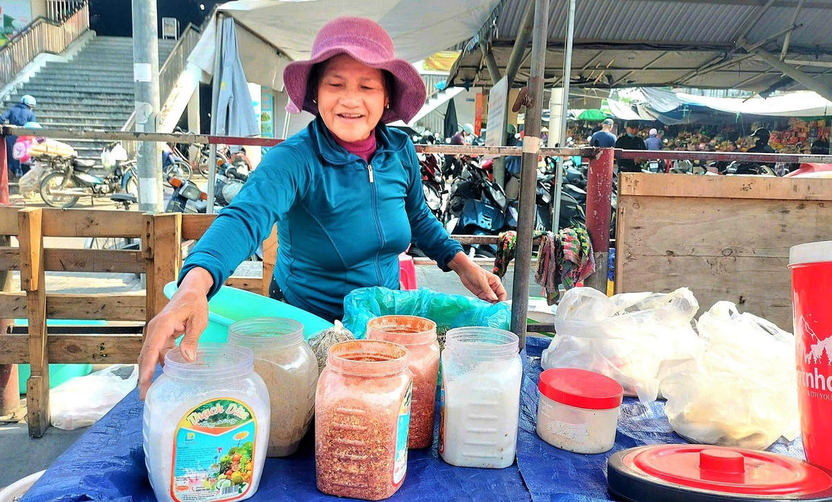 Bà Đào Thị Trinh đang làm gia vị để bán ốc gạo. Ảnh: Tấn Thành.