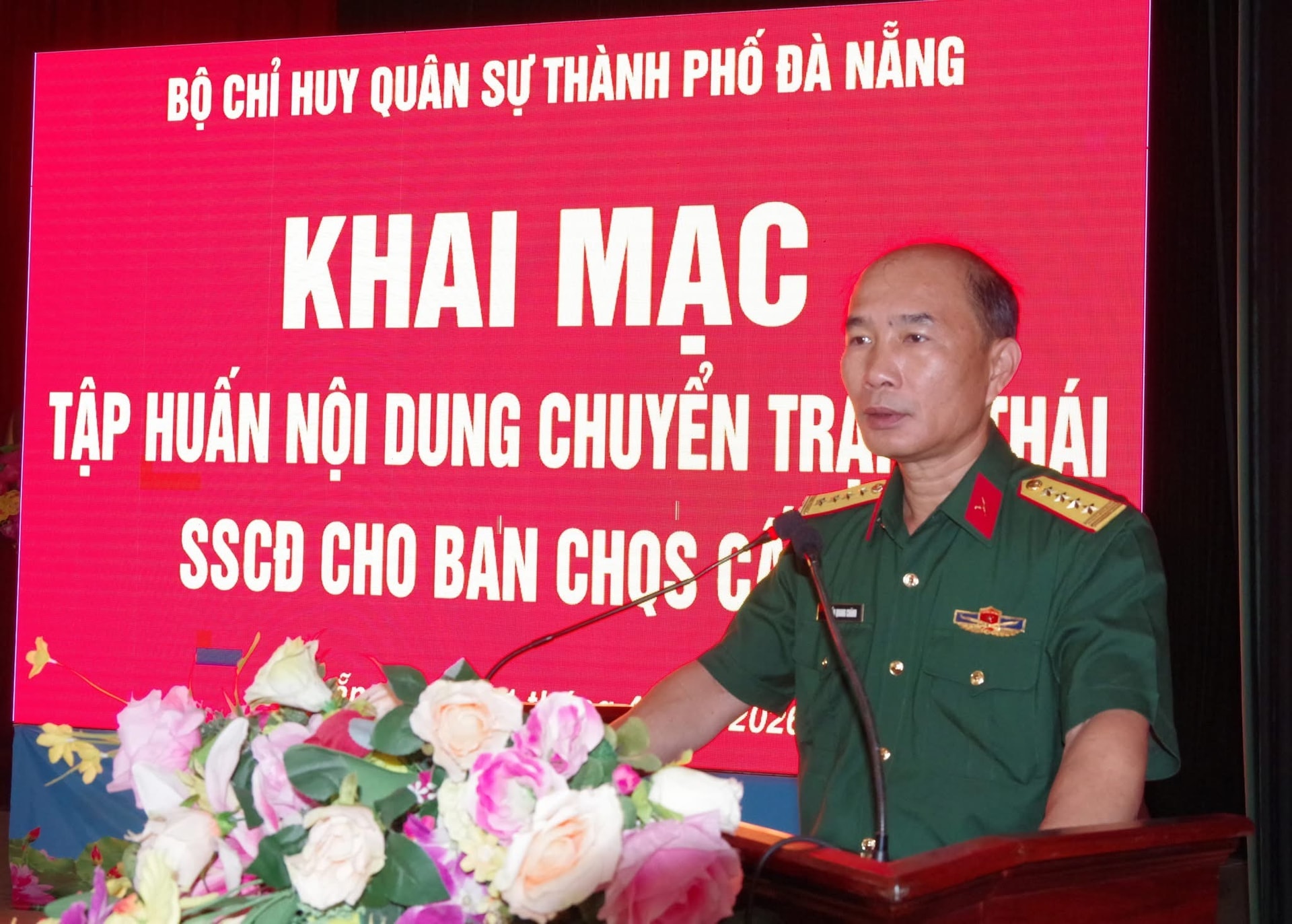 Đại tá Trần Quang Chánh, Phó Chỉ huy trưởng kiêm Tham mưu trưởng Bộ Chỉ huy Quân sự thành phố phát biểu chỉ đạo. Ảnh: MINH THY