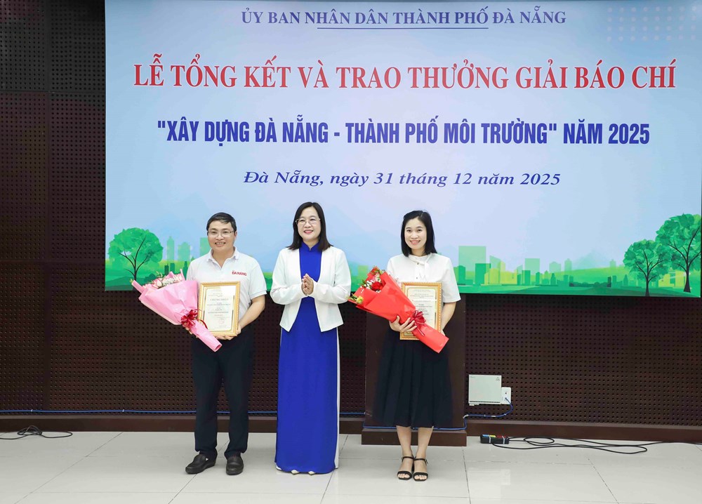 Lãnh đạo Sở VHTTDL TP. Đà Nẵng trao giải cho các tác giả đoạt giải Nhất “Giải báo chí Xây dựng Đà Nẵng - Thành phố môi trường” năm 2025
