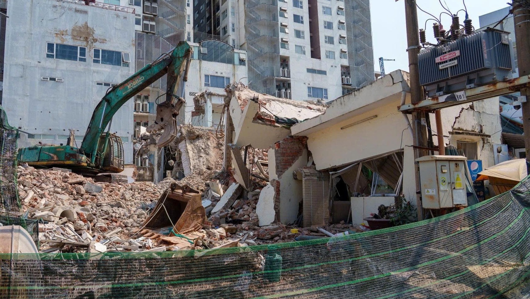 Trong đó, nhà 27 Trần Quý Cáp bị sập hoàn toàn, các nhà còn lại bị hư hỏng và nứt tường, không có thiệt hại về người. Công trình tháo dỡ đã dừng thi công.
