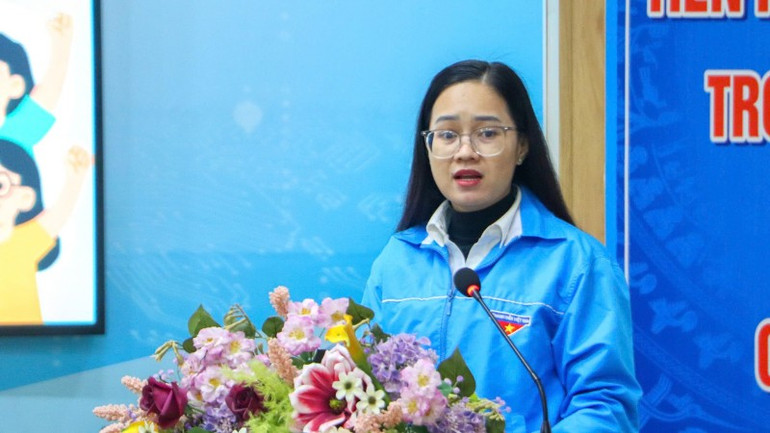Đồng chí Trương Thị Ngọc Phương, Ủy viên Ban Thường vụ Thành Đoàn, Phó Trưởng Ban Công tác Đoàn và Thanh Thiếu nhi, cơ quan Ủy ban Mặt trận Tổ quốc Việt Nam thành phố Đà Nẵng phát biểu.