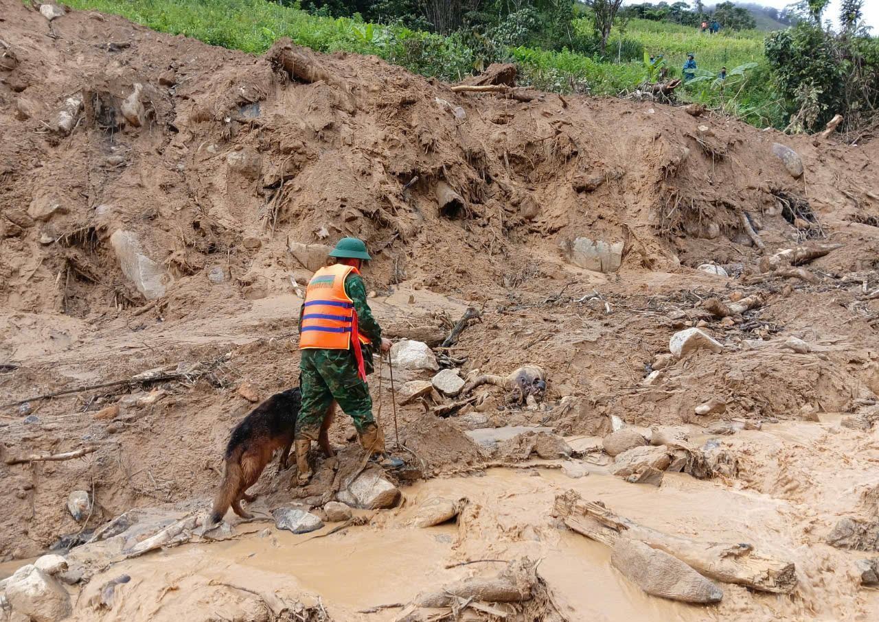 Vào khoảng 15 giờ, ngày 19-11, khi làm nhiệm vụ tìm kiếm nạn nhân mất tích, huấn luyện viên Hà Văn Cường và chó nghiệp vụ đã phát hiện một thi thể tại hiện trường cách khu vực sạt lở 500m.