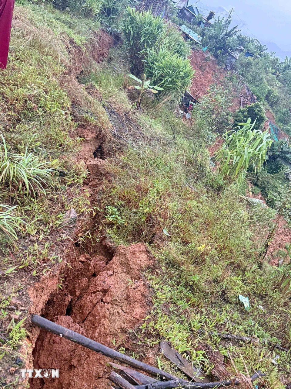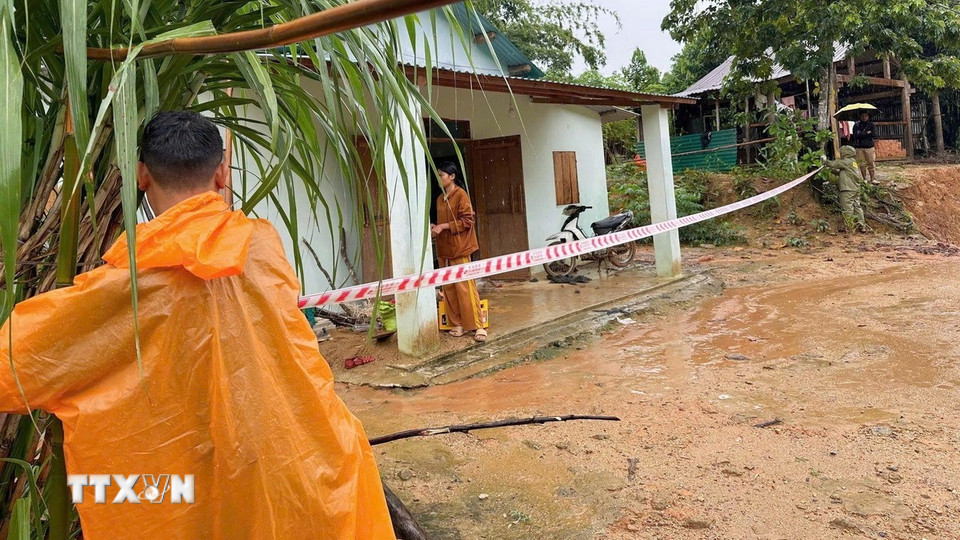 Khoanh vùng, chuyển những gia đình trong vùng có nguy cơ sạt lở núi cao đến nơi ở an toàn. (Ảnh: Đoàn Hữu Trung/ TTXVN)