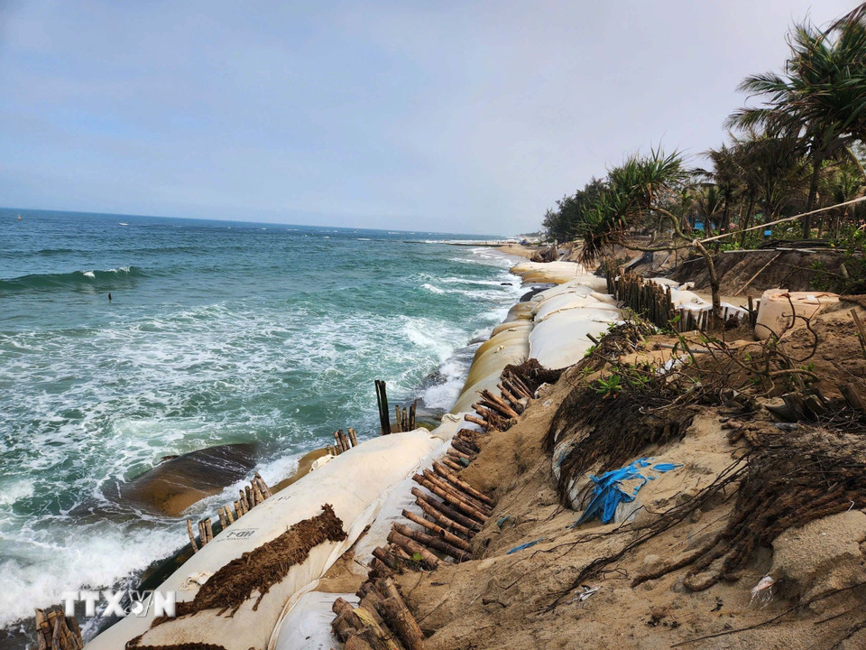 Tình trạng sạt lở bờ biển Hội An, thành phố Đà Nẵng, vẫn chưa có dấu hiệu dừng lại, ngày càng sạt lở nặng hơn. (Ảnh: Đoàn Hữu Trung/TTXVN)