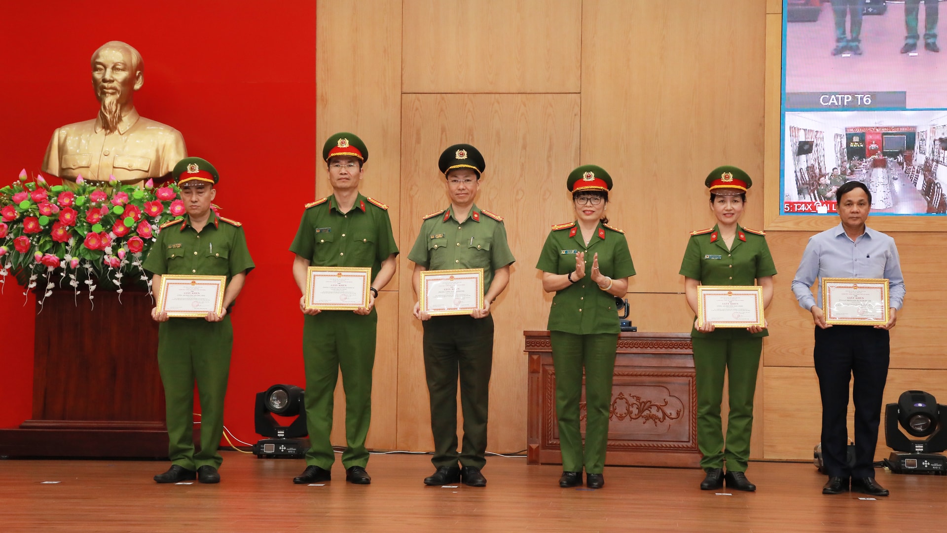 Đại tá Võ Thị Trinh, Phó Giám đốc, Thủ trưởng Cơ quan thi hành án hình sự Công an thành phố trao giấy khen cho các tập thể xuất sắc. Ảnh: ĐẮC MẠNH