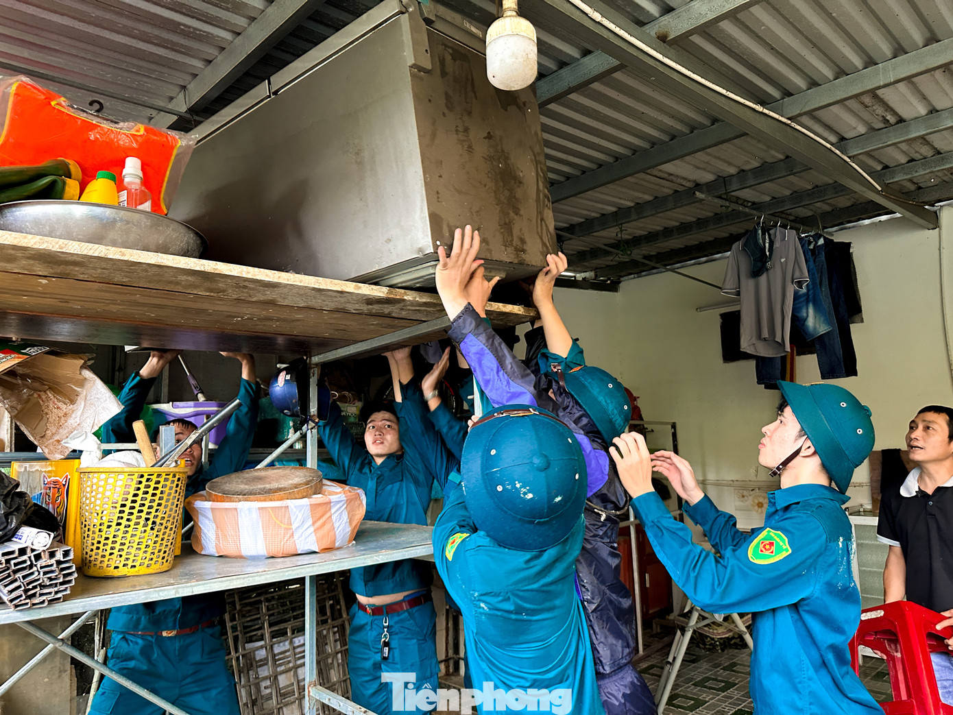“Phường đã chỉ đạo lực lượng dân quân phối hợp với các đơn vị bộ đội đóng quân trên địa bàn hỗ trợ người dân kê dọn đồ đạc, tài sản lên cao. Đồng thời, chúng tôi luôn sẵn sàng thông báo, hướng dẫn người dân di chuyển đến nơi an toàn khi cần thiết”, vị này nói.