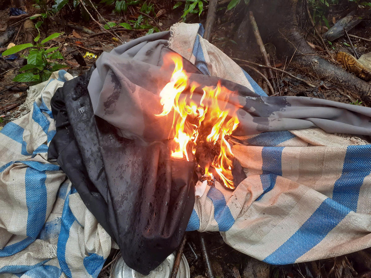 Tổ công tác đã lập biên bản vụ việc, tiến hành tiêu hủy 1 lán trại trái phép; đồng thời thu giữ và tiêu hủy nhiều phương tiện, vật dụng phục vụ khai thác khoáng sản trái phép, gồm: 1 máy nổ, khoảng 200m dây điện, 100m ống nước, 30 lít dầu cùng một số dụng cụ cá nhân.