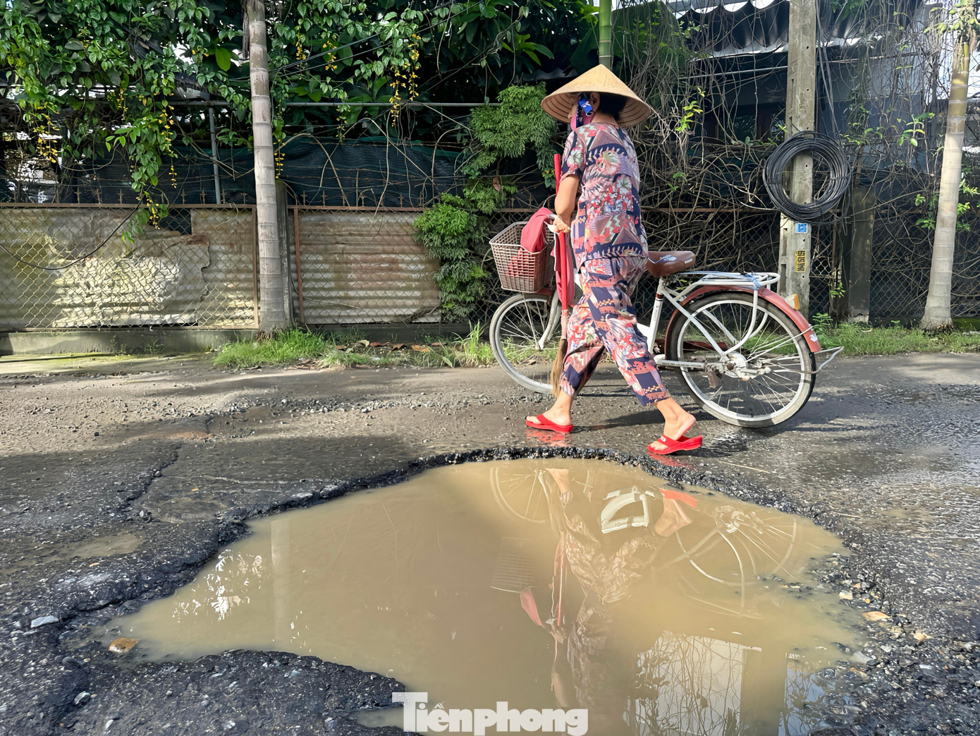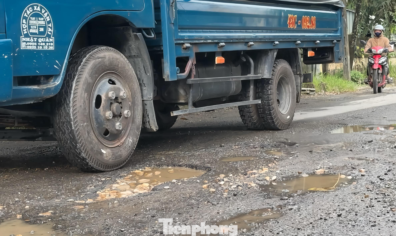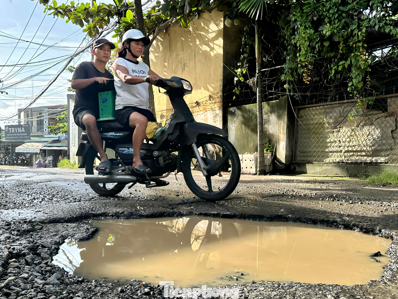 Nhiều đoạn trên tuyến đường này dày đặc những hố sâu, mặt đường bong tróc, biến dạng. Khi trời mưa, các ổ voi, ổ gà ngập nước, khiến người điều khiển xe máy dễ trượt ngã.
