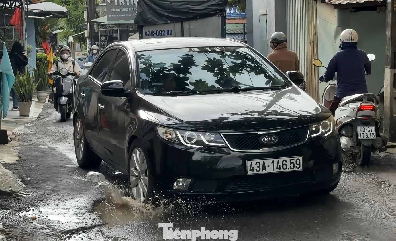 Nhiều ổ voi, ổ gà trên tuyến đường bị ngập nước, gây khó khăn cho việc đi lại của người dân.