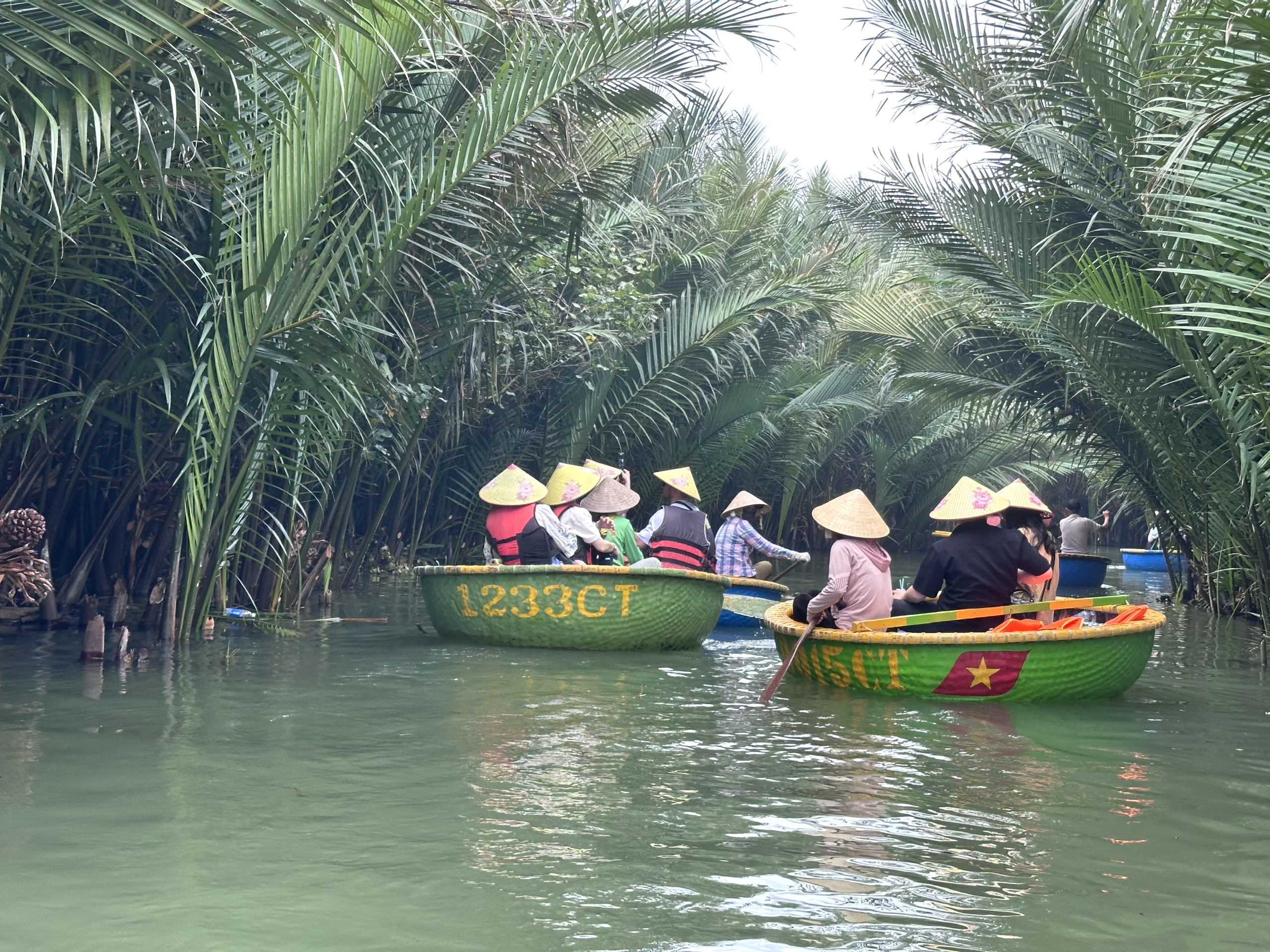 Chèo thuyền thúng tại khu vực rừng dừa bảy mẫu Hội An. Ý thức chấp hành pháp luật của chủ kinh doanh và nhân viên phục vụ góp phần bảo đảm an toàn cho du khách.