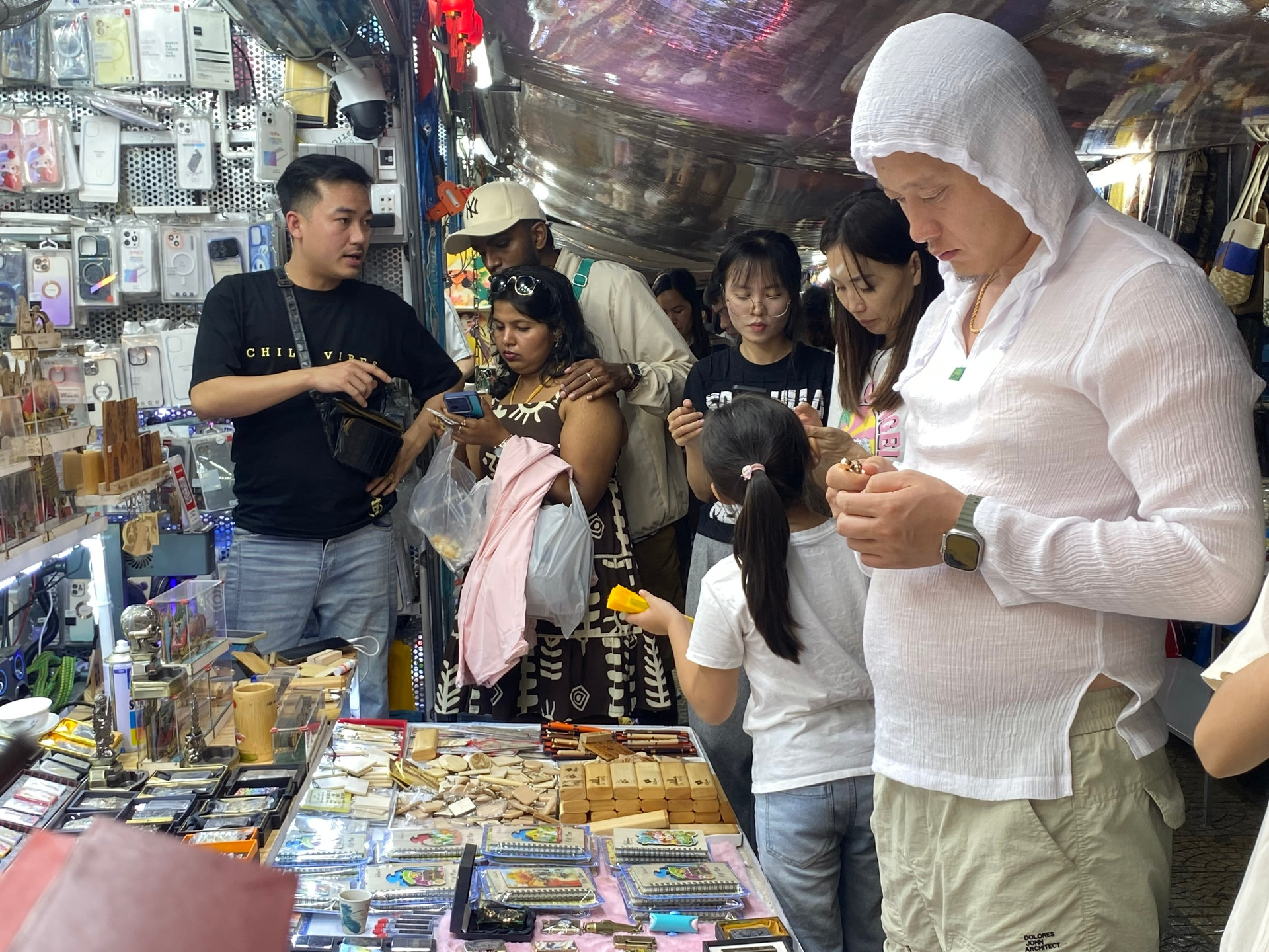 Du khách mua sắm tại chợ đêm Sơn Trà. Ảnh: VĨNH LỘC