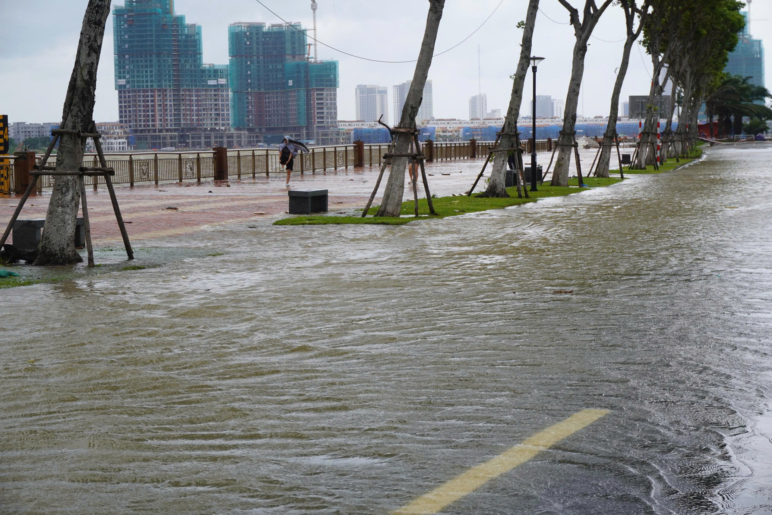 Sóng lớn khiến nước sông Hàn tràn qua đường Như Nguyệt, gây ngập cục bộ một số khu vực lân cận