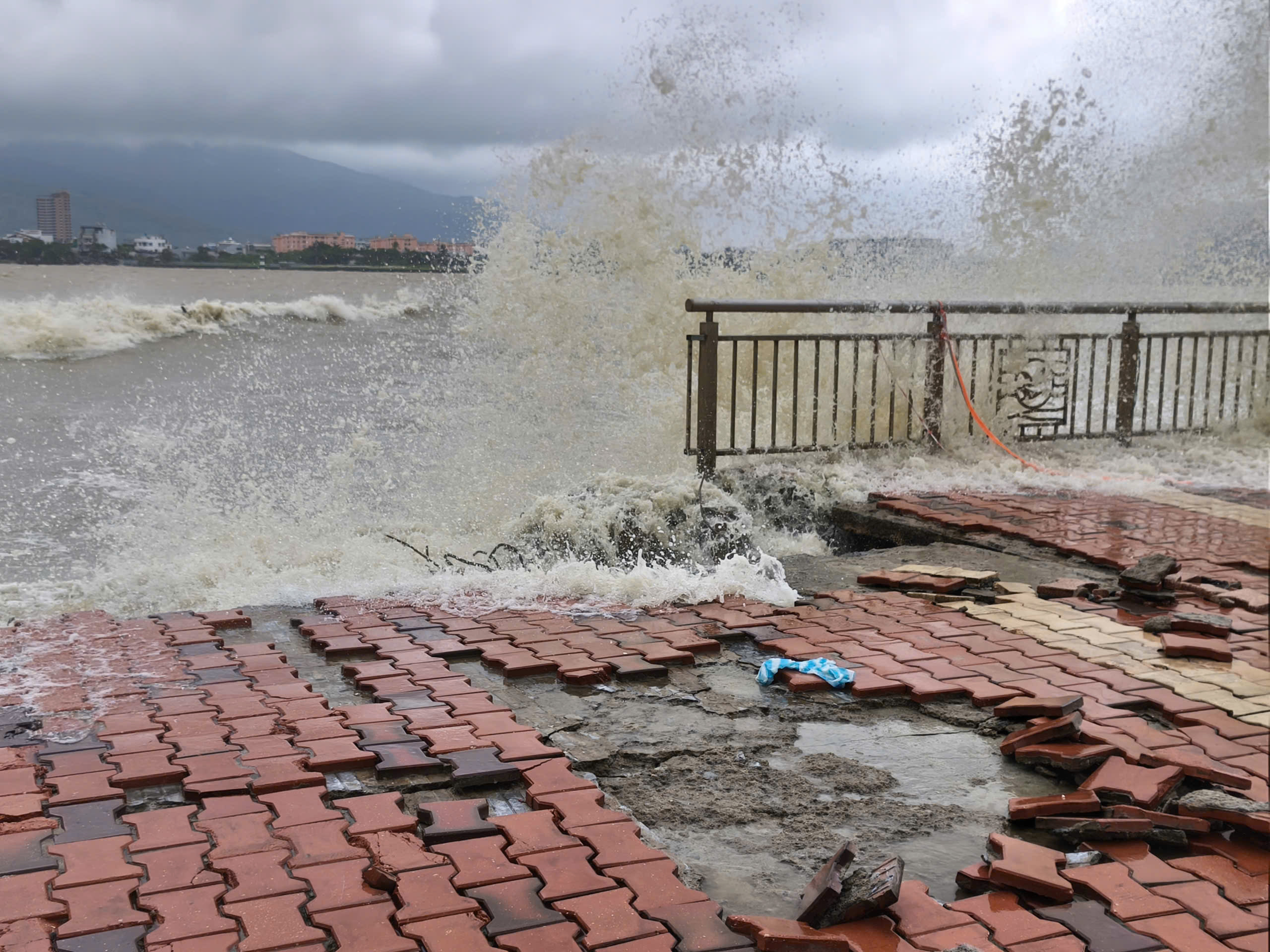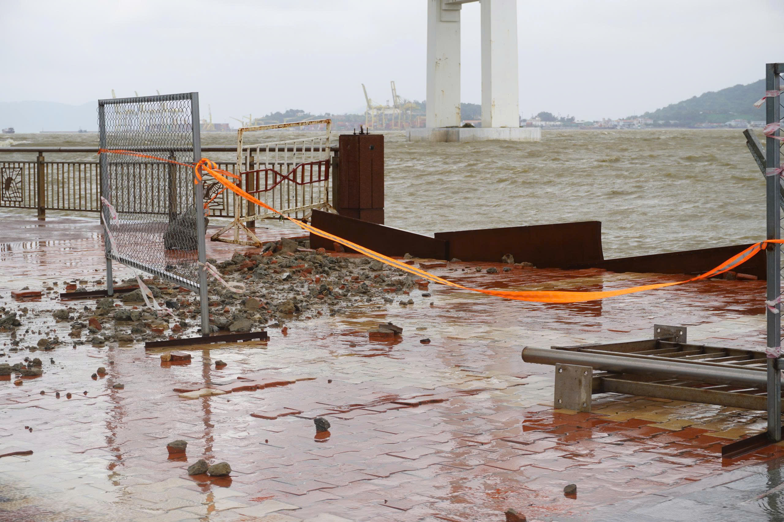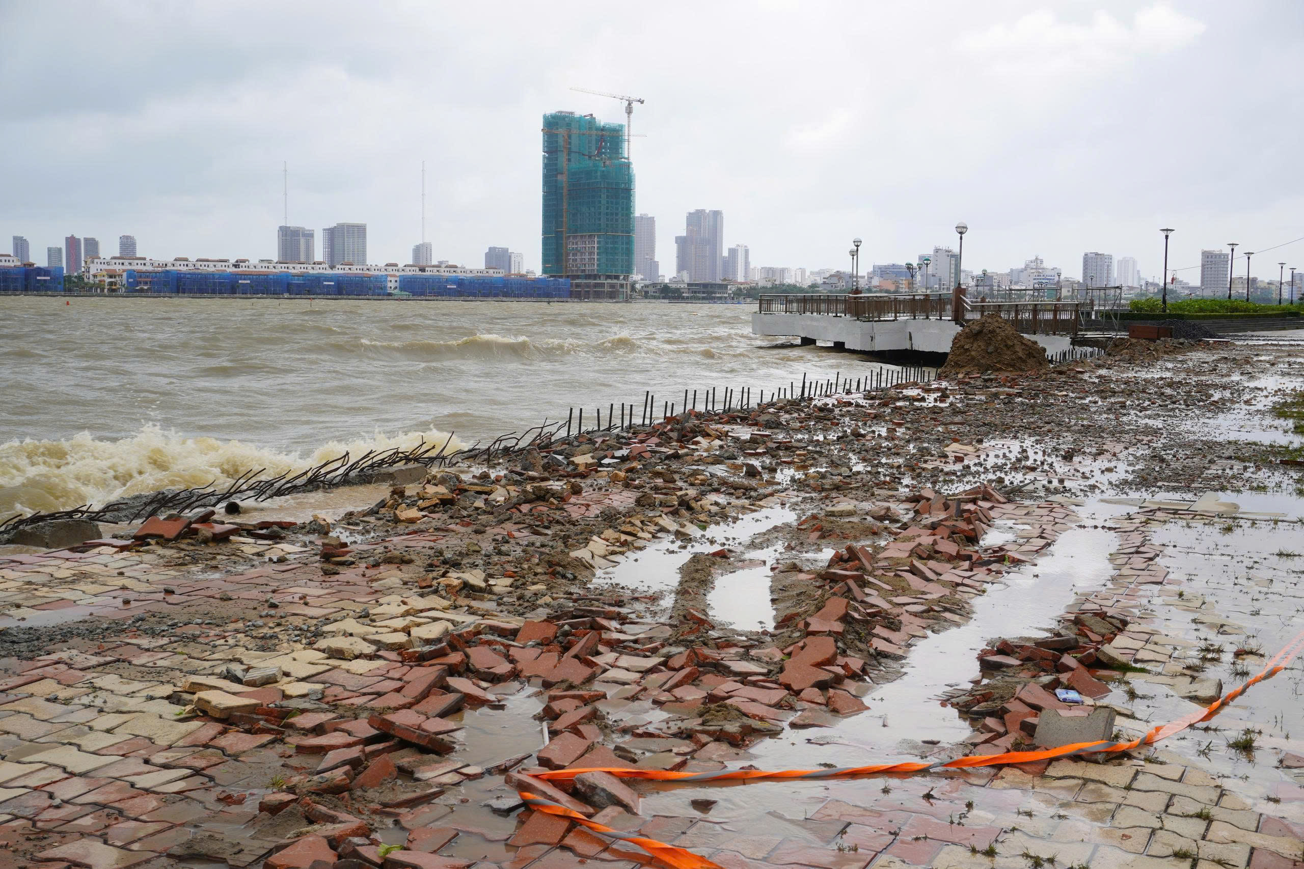 Những tấm gạch đá lát vỉa hè bị sóng đánh vỡ thành từng mảnh