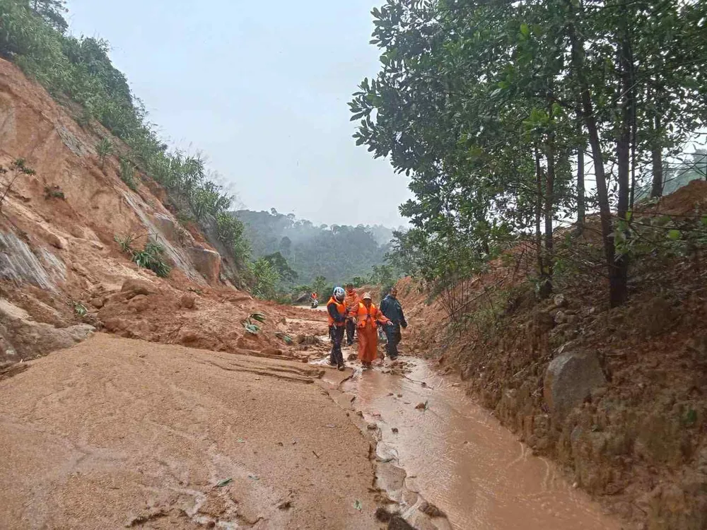 Vượt qua vị trí khó khăn nhất, lực lượng chức năng xã Phước Chánh đã hộ tống, đưa cô giáo vượt thêm 20 km đường núi với nhiều điểm sạt lở trước khi đến Trung tâm Y tế Phước Sơn.
