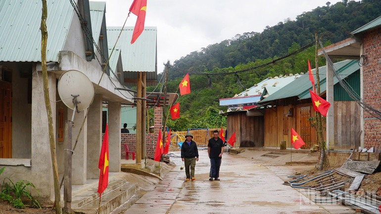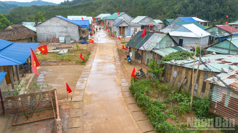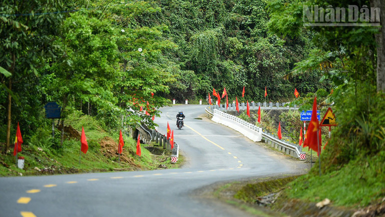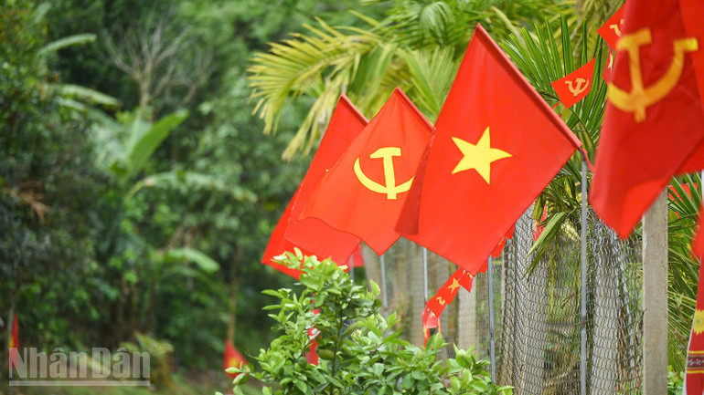 Cờ Tổ quốc và cờ Đảng được trang trí trên những con đường.