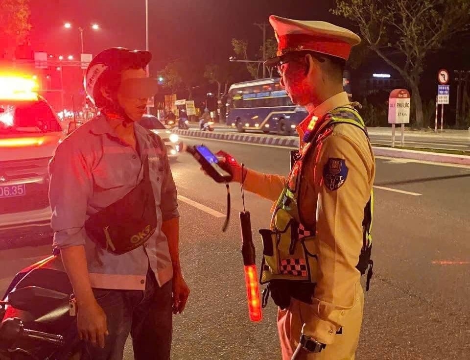 CSGT Đà Nẵng tăng cường kiểm tra nồng độ cồn người điều khiển phương tiện tham gia giao thông. Ảnh: Công an cung cấp.