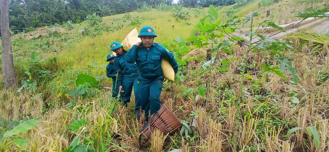 Cùng thời gian này, Ban chỉ huy Quân sự xã Nam Giang cũng huy động lực lượng Dân quân tự vệ về các thôn hỗ trợ người dân thu hoạch. Trong ngày 6-11, đã giúp thu hoạch và vận chuyển gần 1ha lúa.