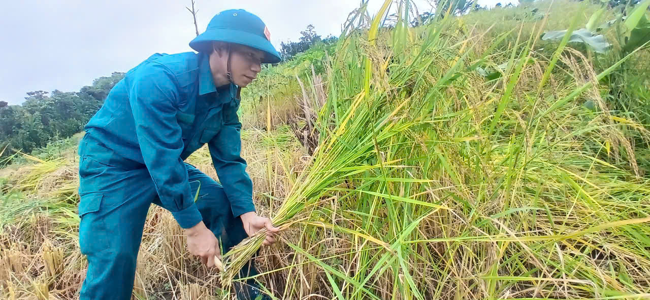 Trong ngày 6-11, các lực lượng đã giúp người dân thu hoạch gần 1ha lúa rẫy