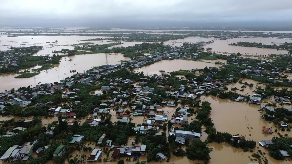 Vừa qua, các khu vực nằm dưới 'họng nước' thủy điện chìm trong lũ. Ảnh: Thanh Nhật