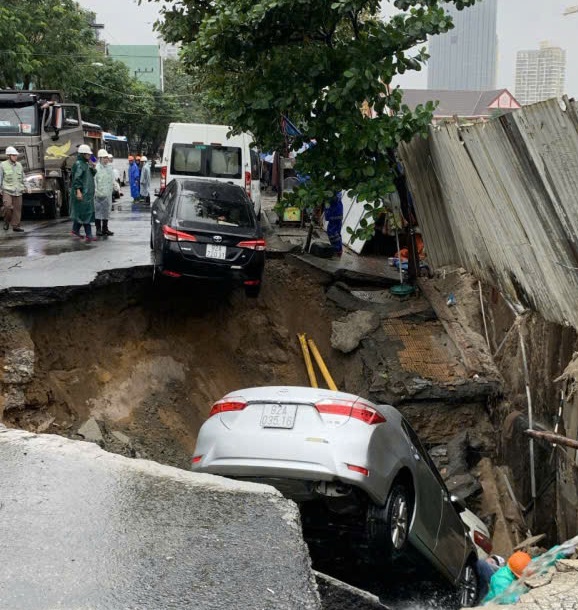 Vụ việc khiến 2 xe ô tô đang đậu tại khu vực bị rơi xuống hố sụt hư hỏng; không có thiệt hại về người.