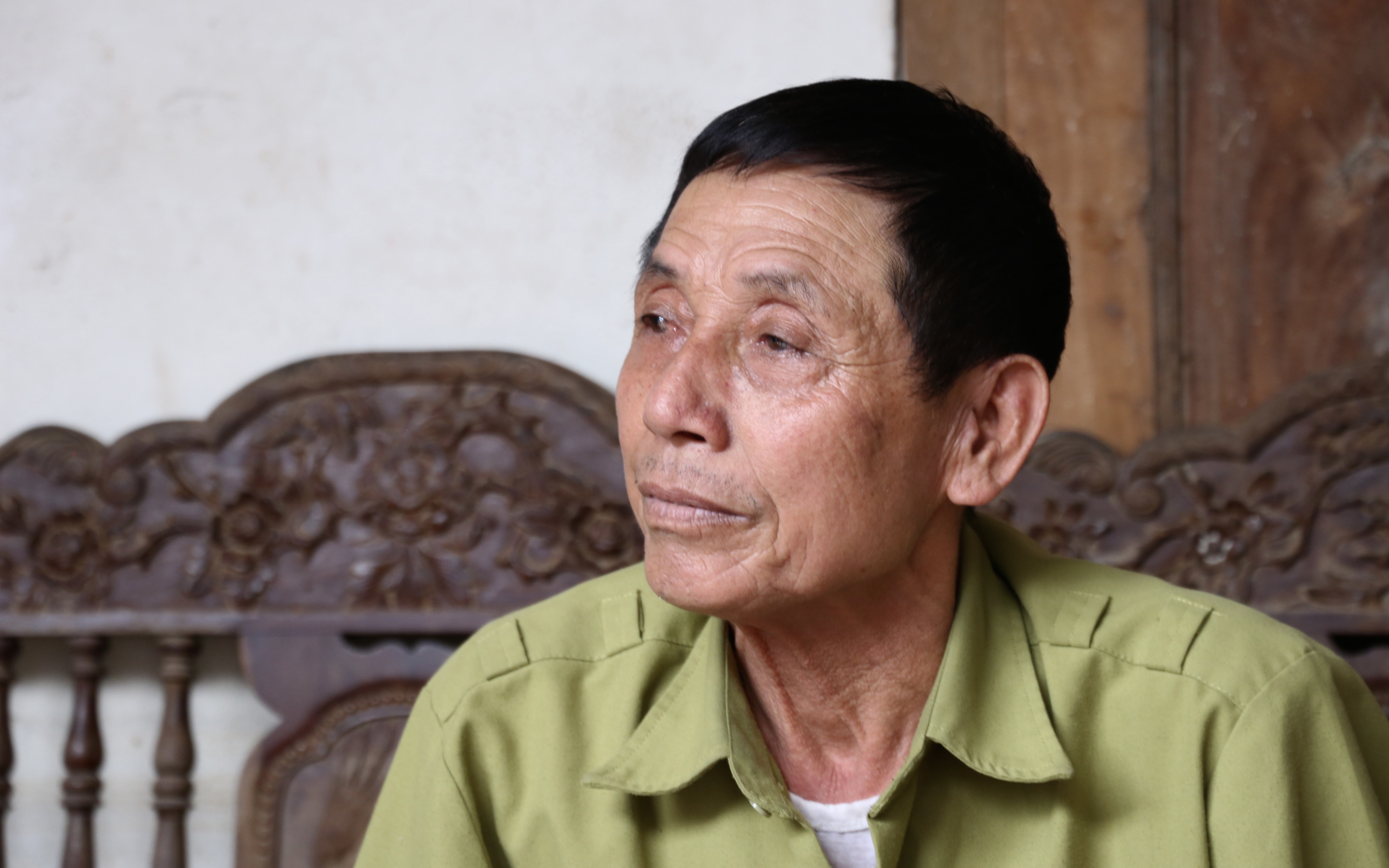 Hướng ánh mắt xa xăm nhìn về phía mênh mông nước sau nhà, ông Đỗ Văn Thế (72 tuổi, thôn Ngô Đạo) bảo từ bé đến giờ, lần đầu ông chứng kiến trận lũ lụt lớn như vậy.