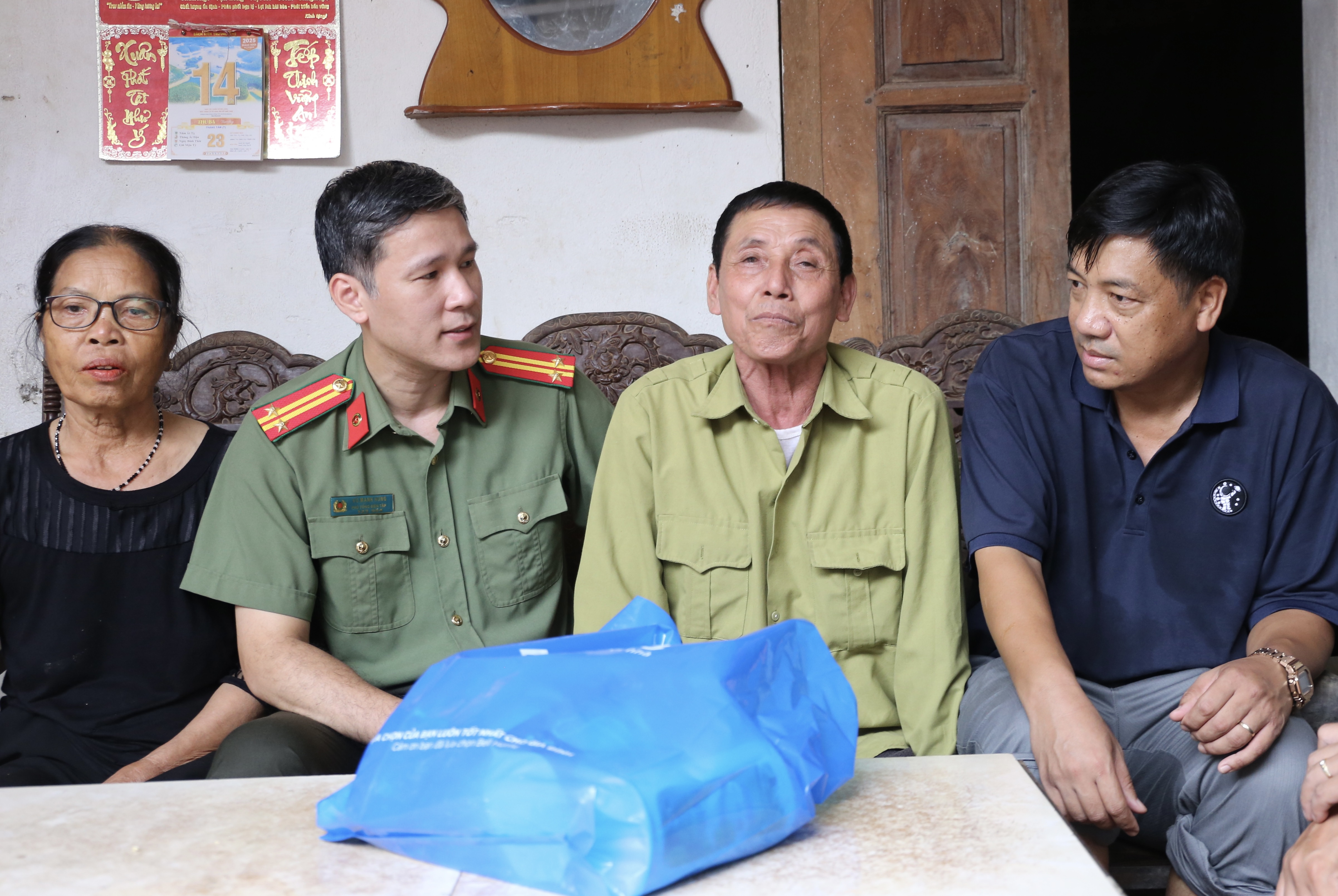 "Nhà tôi ở vị trí khá cao nhưng đợt lũ vừa rồi nước cũng dâng ngập nửa nhà. Mấy con gà chết hết cả, chiếc máy giặt mới mua 10 triệu đồng cùng nhiều vật dụng trong gia đình bị lũ cuốn trôi mất, đàn lợn 4 con may mắn kịp mang đi gửi vừa mới đón về hôm qua. Không riêng nhà tôi mà nhiều hộ dân trong thôn cũng bị thiệt hại nặng nề", ông Thế chia sẻ khi Đoàn công tác An ninh Thủ đô tới thăm hỏi, tặng quà.