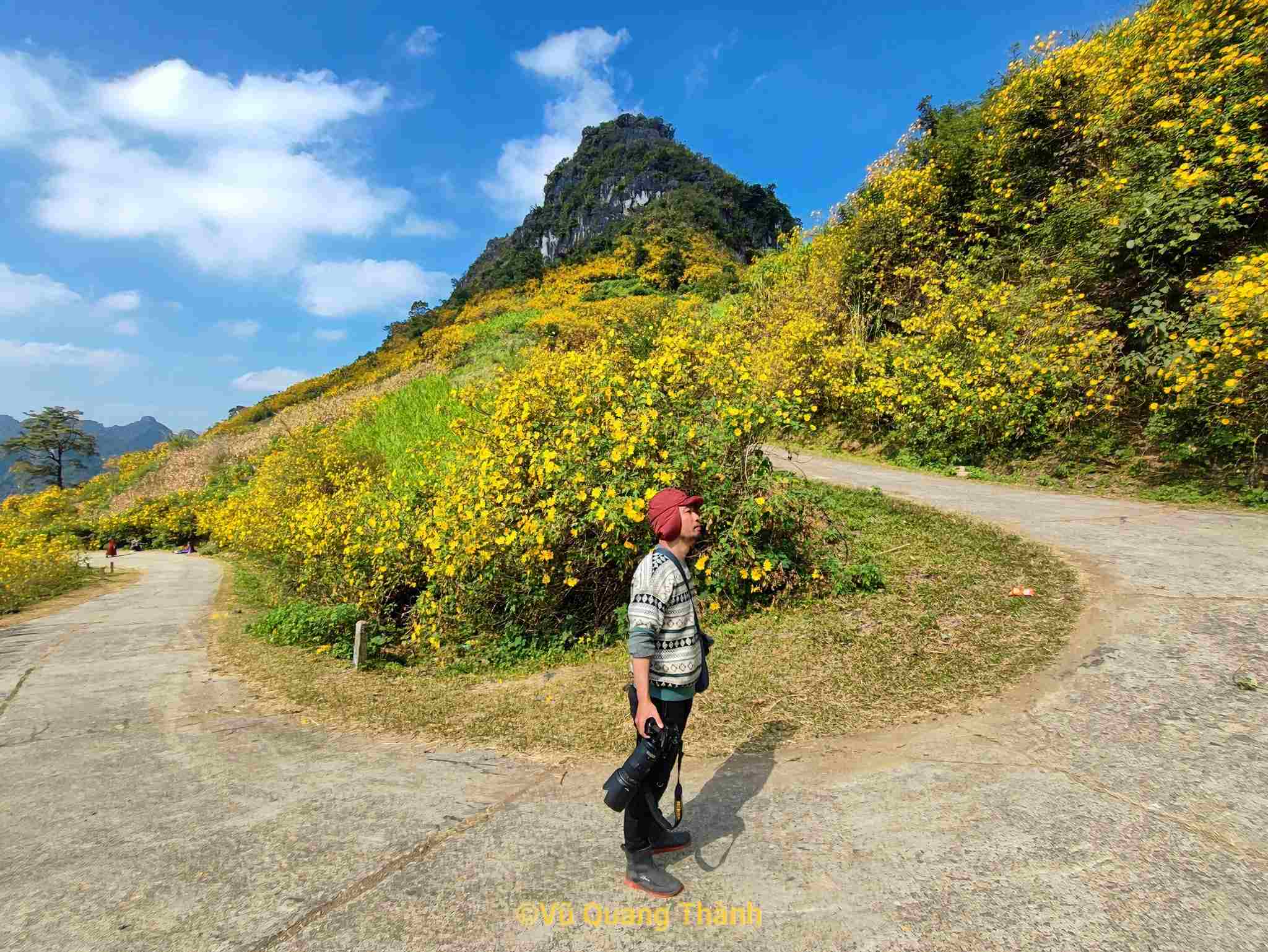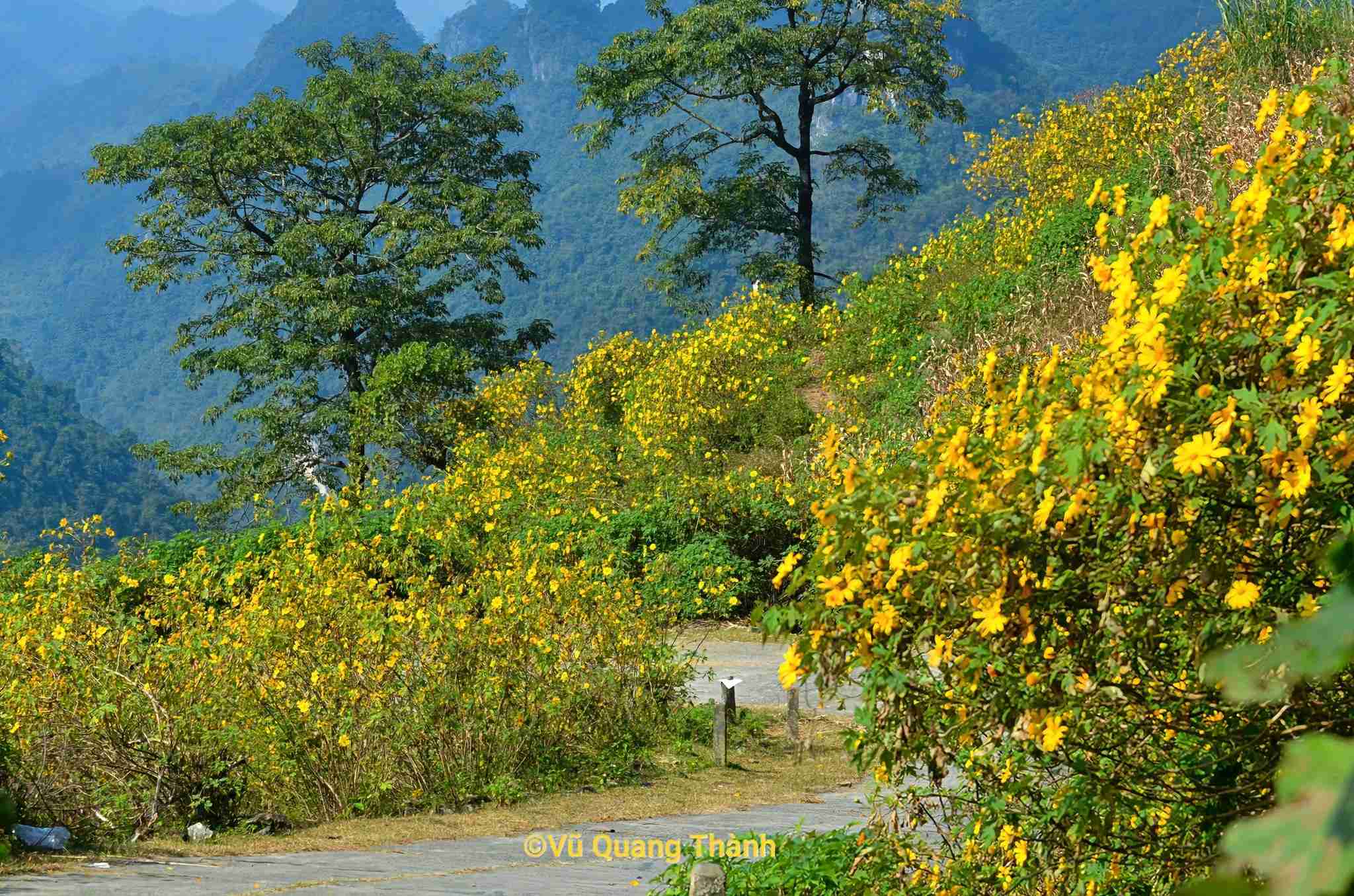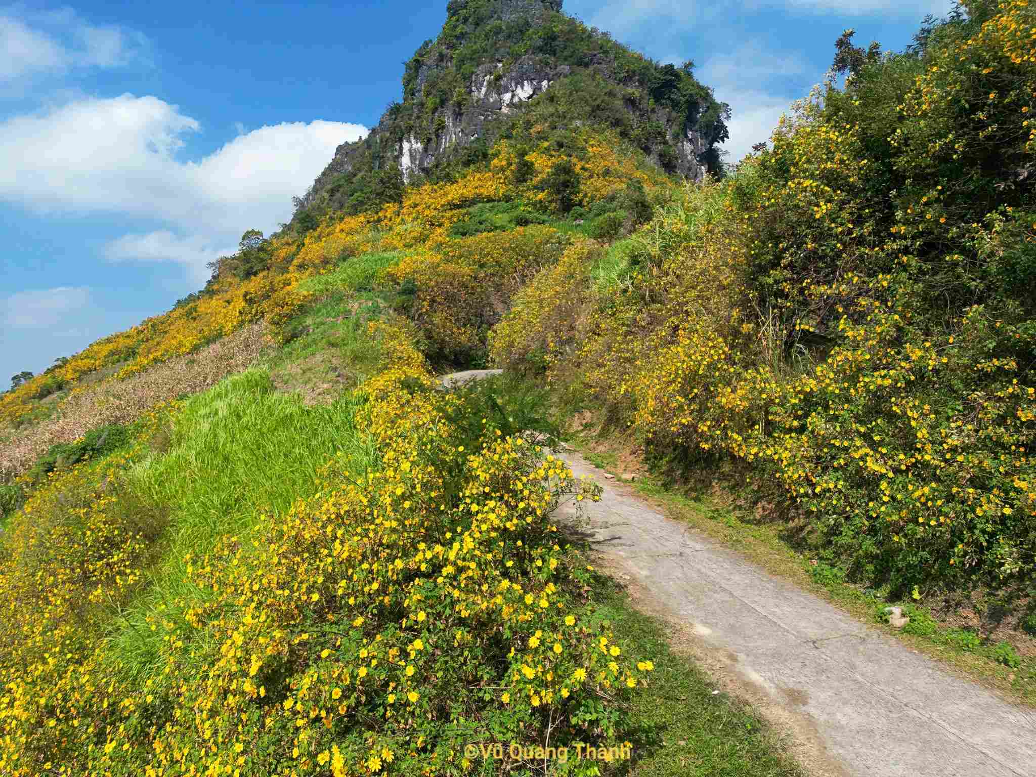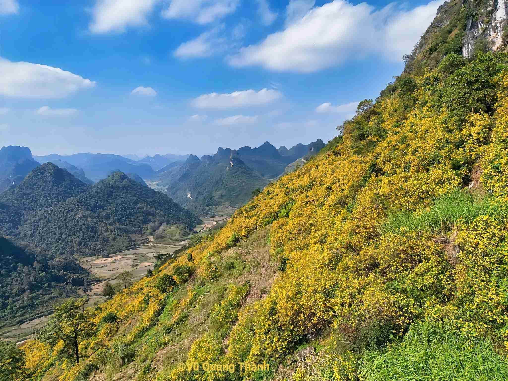 Mùa dã quỳ tại Hạ Lang là thời điểm lý tưởng để ghi lại những bức ảnh vàng rực, những con đường uốn lượn phủ đầy hoa, hay đơn giản là tận hưởng không khí bình yên, chậm rãi của núi rừng Đông Bắc. Ảnh: Vũ Quang Thành