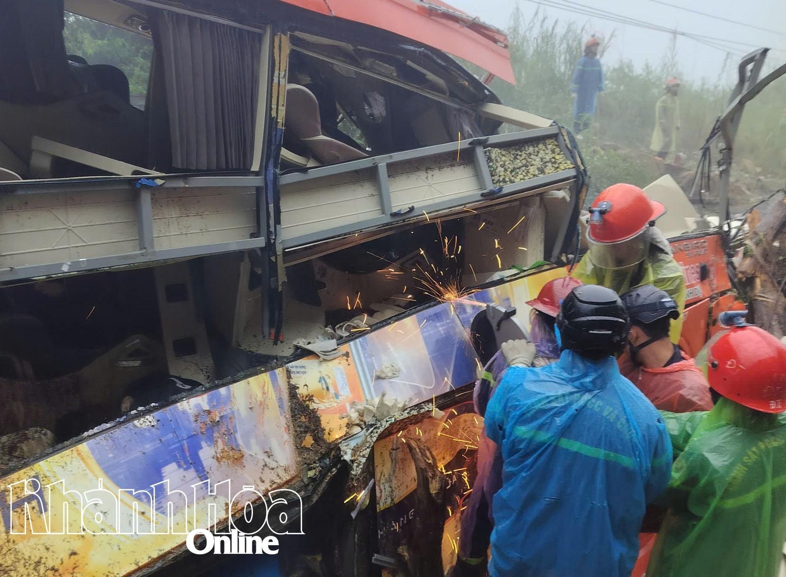 Sau khi nhận tin, Phòng Cảnh sát Phòng cháy chữa cháy và cứu nạn, cứu hộ Công an tỉnh Khánh Hòa đã xuất 1 xe chỉ huy, 1 xe cứu nạn, cứu hộ cùng các cán bộ, chiến sĩ, đồng thời thông báo cho lực lượng cảnh sát giao thông, Trung tâm Cấp cứu 115 đến hiện trường tham gia cứu nạn, cứu hộ. Thời điểm xảy ra tai nạn trời mưa to, sạt lở 2 đầu tại Km43 và Km47 nên việc tiếp cận hiện trường gặp khó khăn. Phải đến 00 giờ 05 phút rạng sáng nay, các lực lượng mới tiếp cận được hiện trường vụ tai nạn.