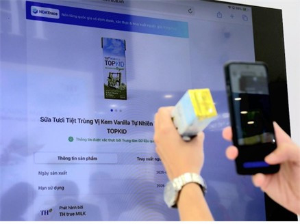 Truy xuất nguồn gốc sản phẩm đối với sản phẩm sữa tươi TH true MILK. Ảnh: TH