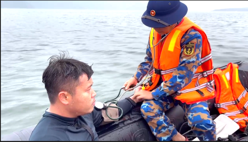 Do điều kiện thời tiết bất lợi, sương mù, trời rét, các tốp thợ lặn thường xuyên được đưa lên thuyền để kiểm tra sức khỏe.